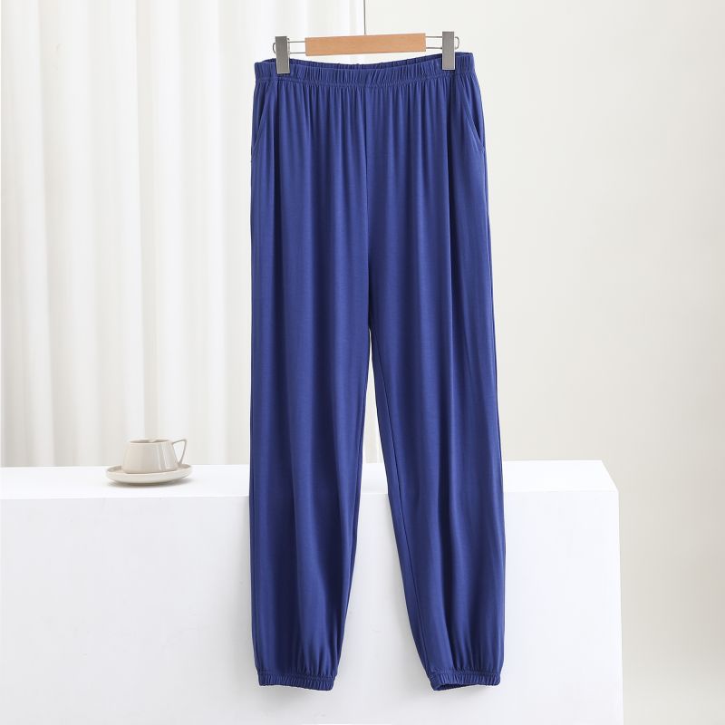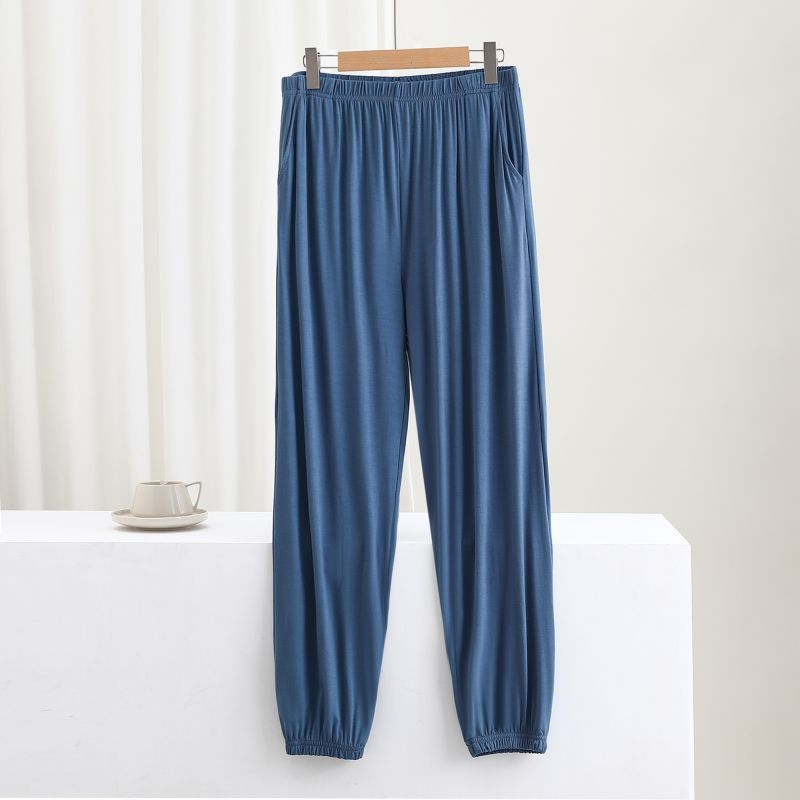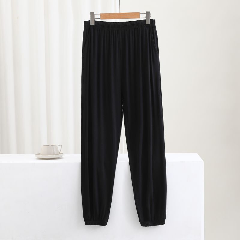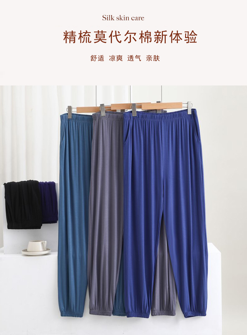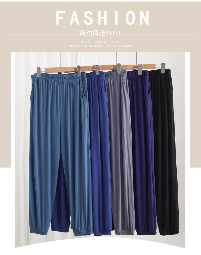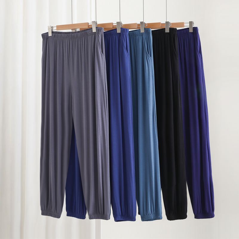 남성용 캐주얼 바지 봄과 가을 얇은 느슨한 넓은 다리 스포츠 바지 모달 포켓 발 랜턴 홈 바지