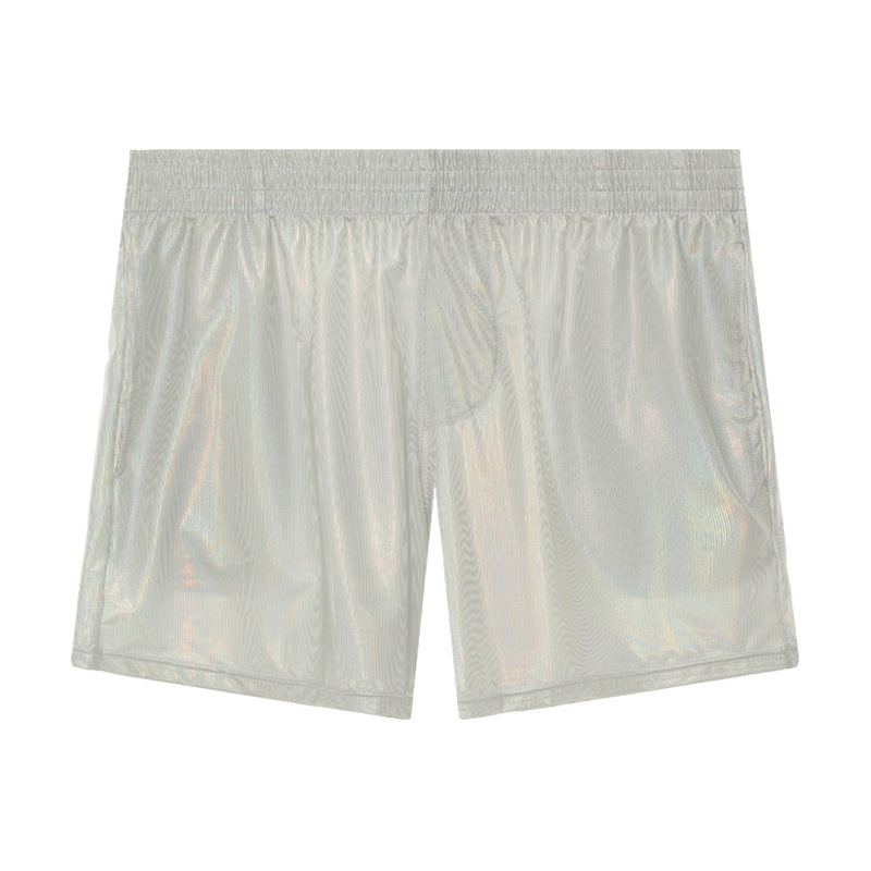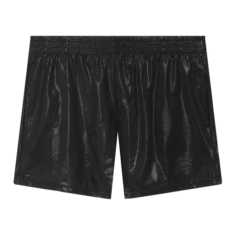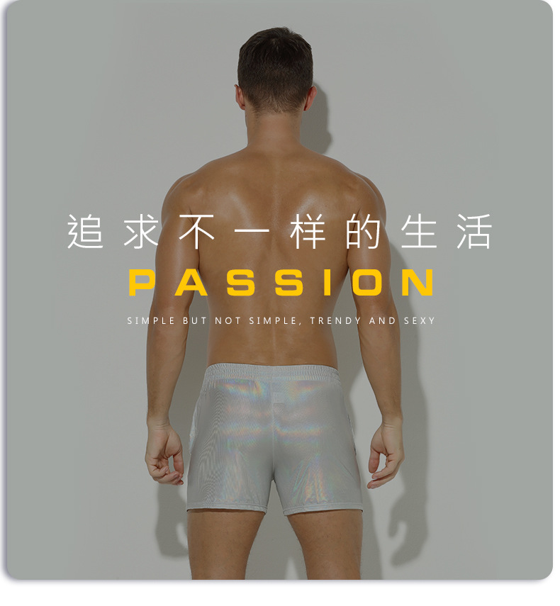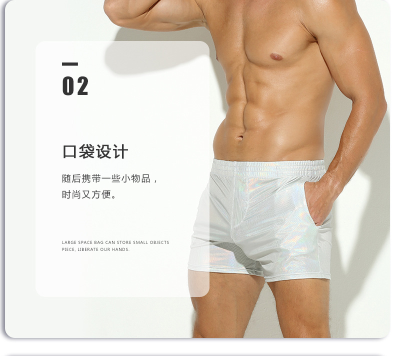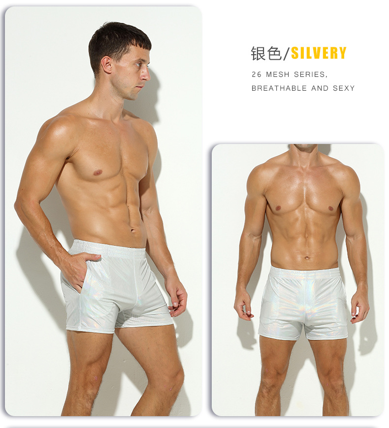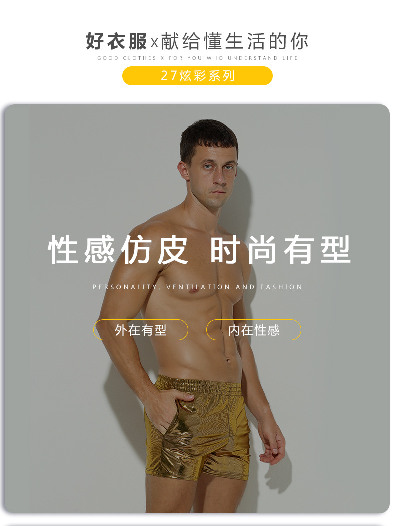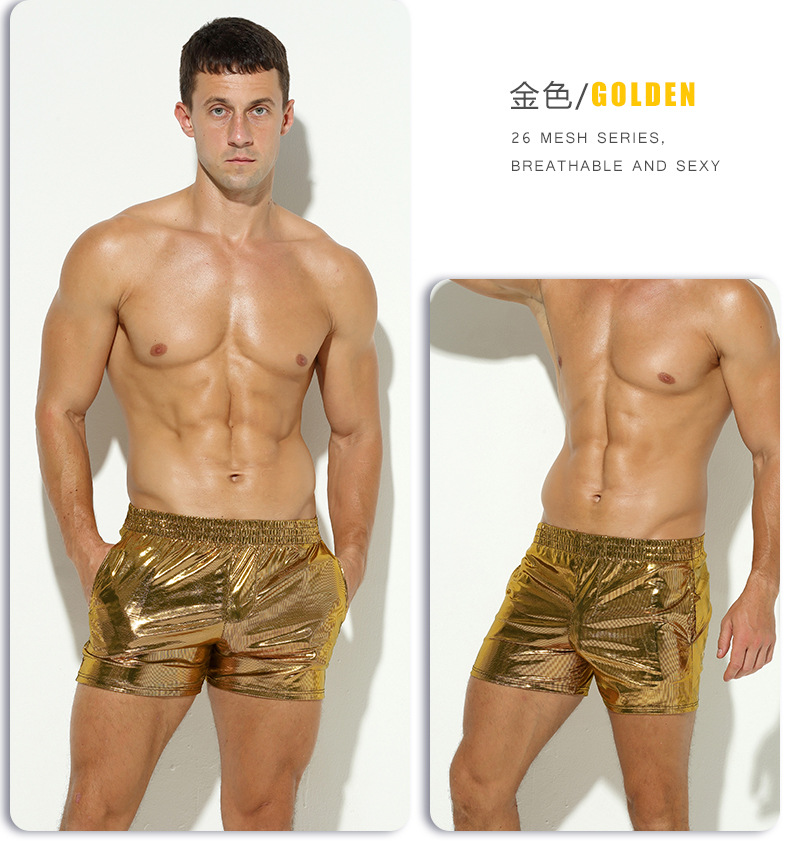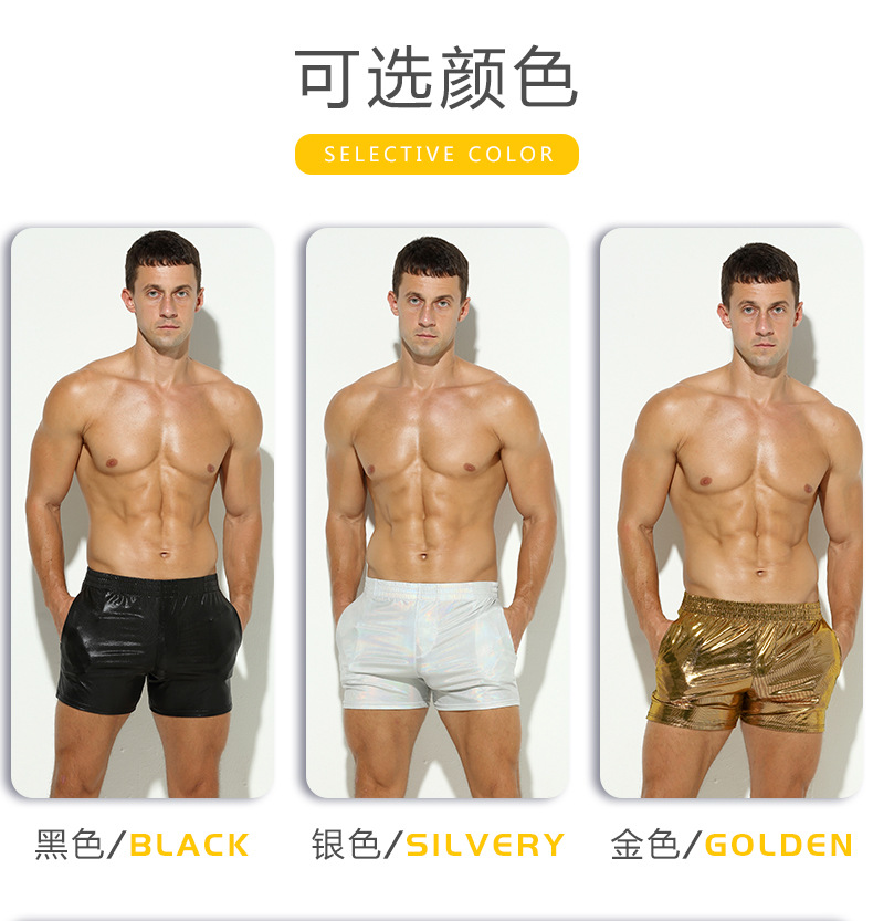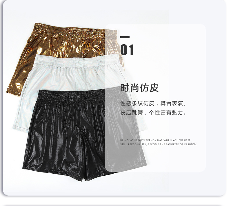 섹시한 남자 바지 모조 가죽 밝은 줄무늬 스트레치 바지 무대 쇼 스포츠 플러스 사이즈 게이 반바지스토어 가기