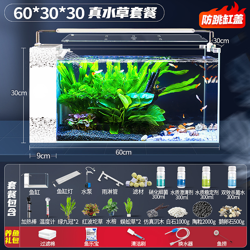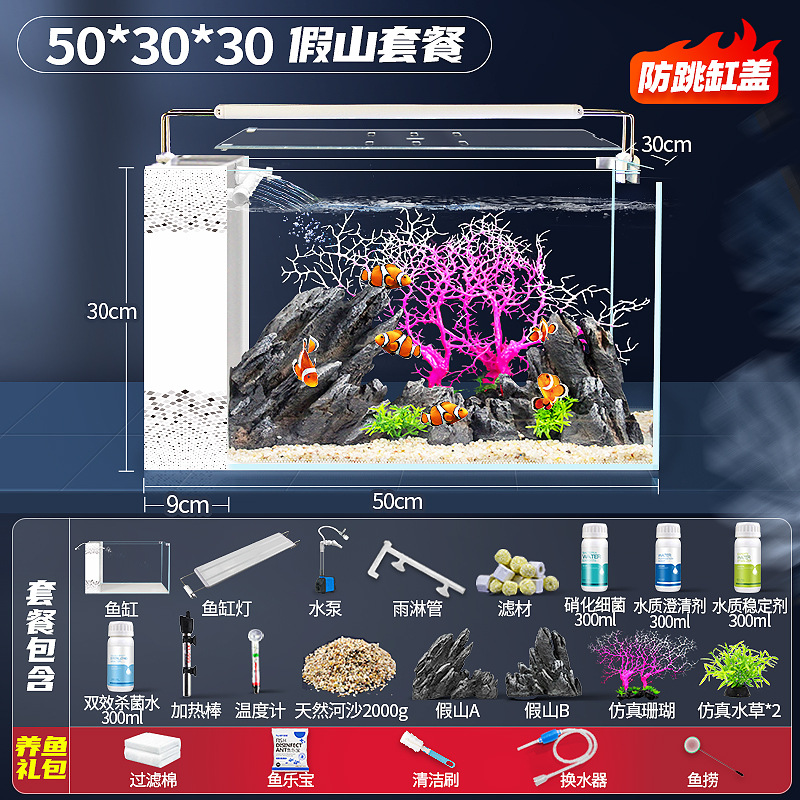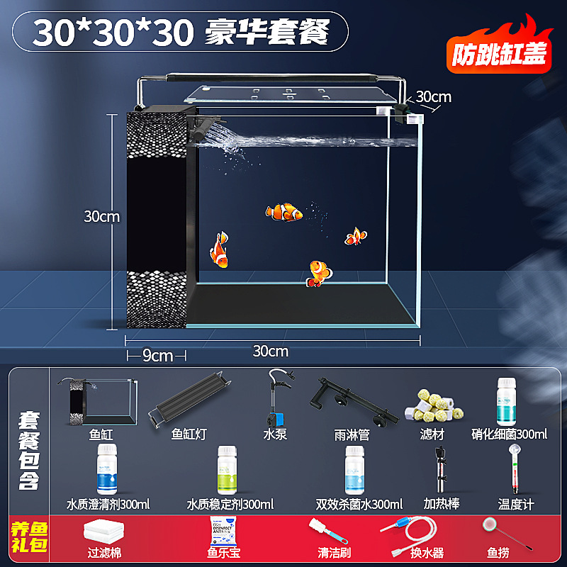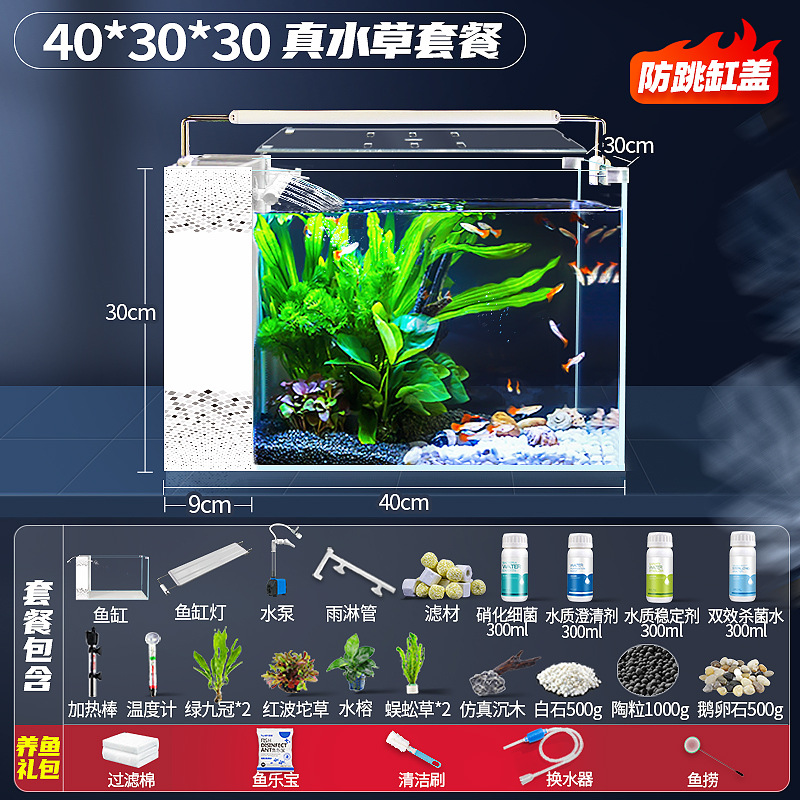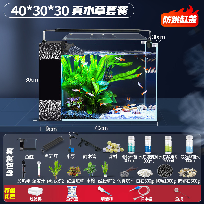 새로운 디자인의 데스크탑 사이드 필터 어항, 거실용 가정용 중대형 초백유리 산소공급 자가순환 베라리움 생태수조스토어 가기