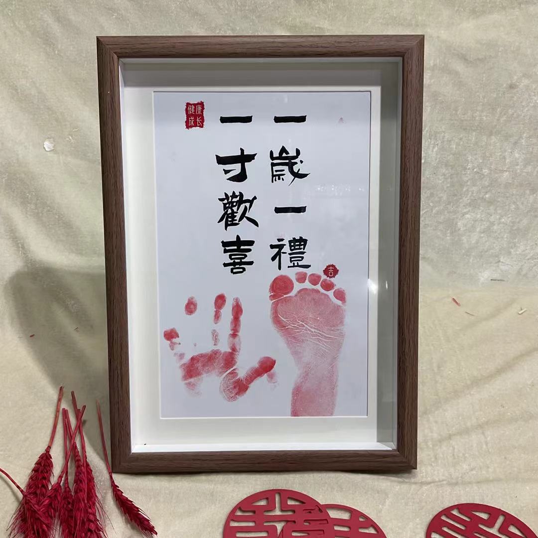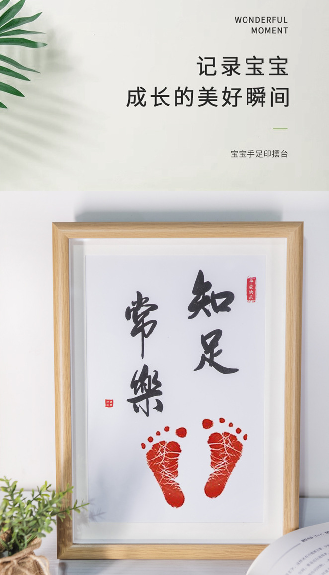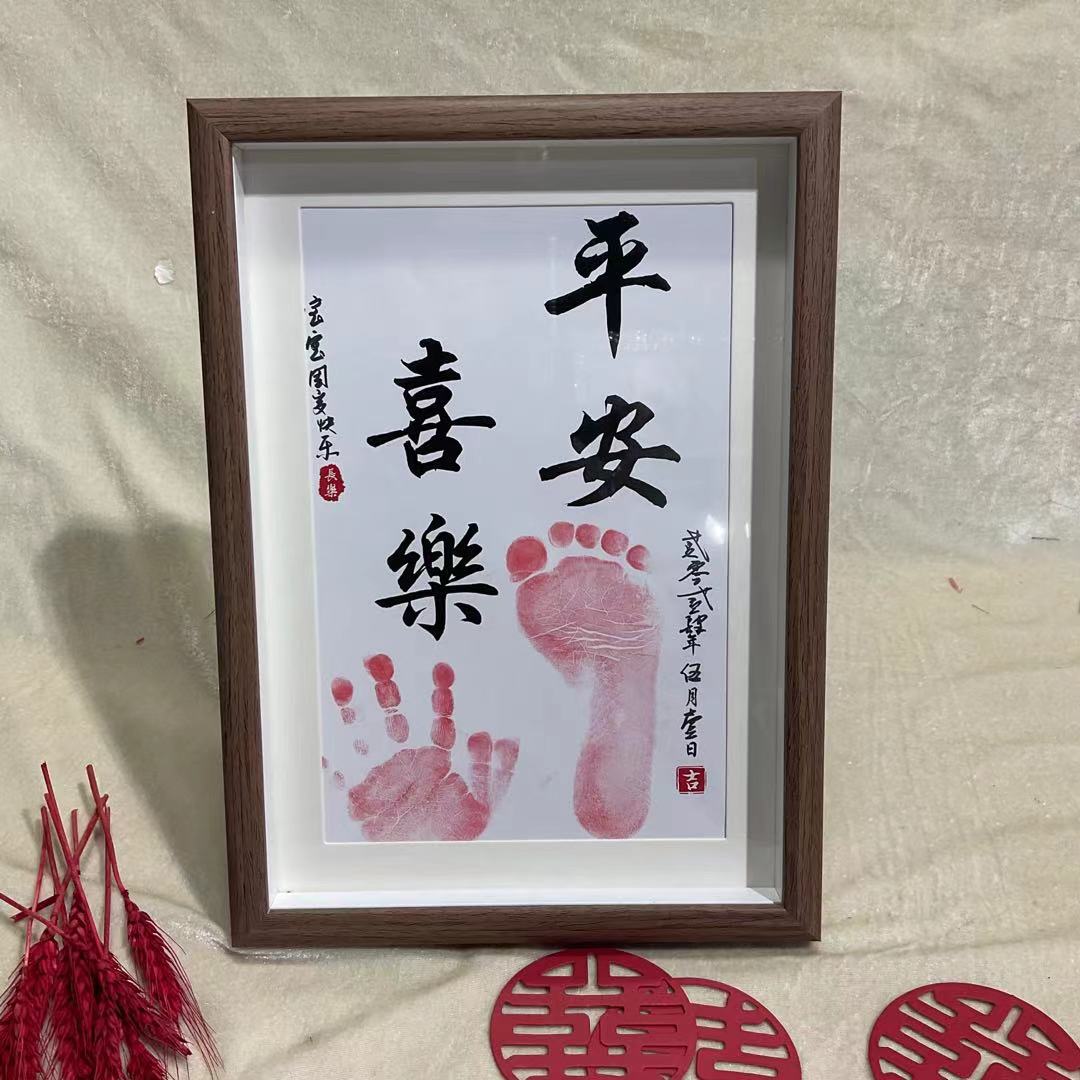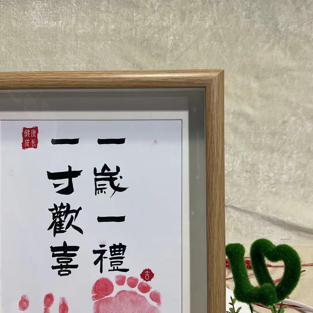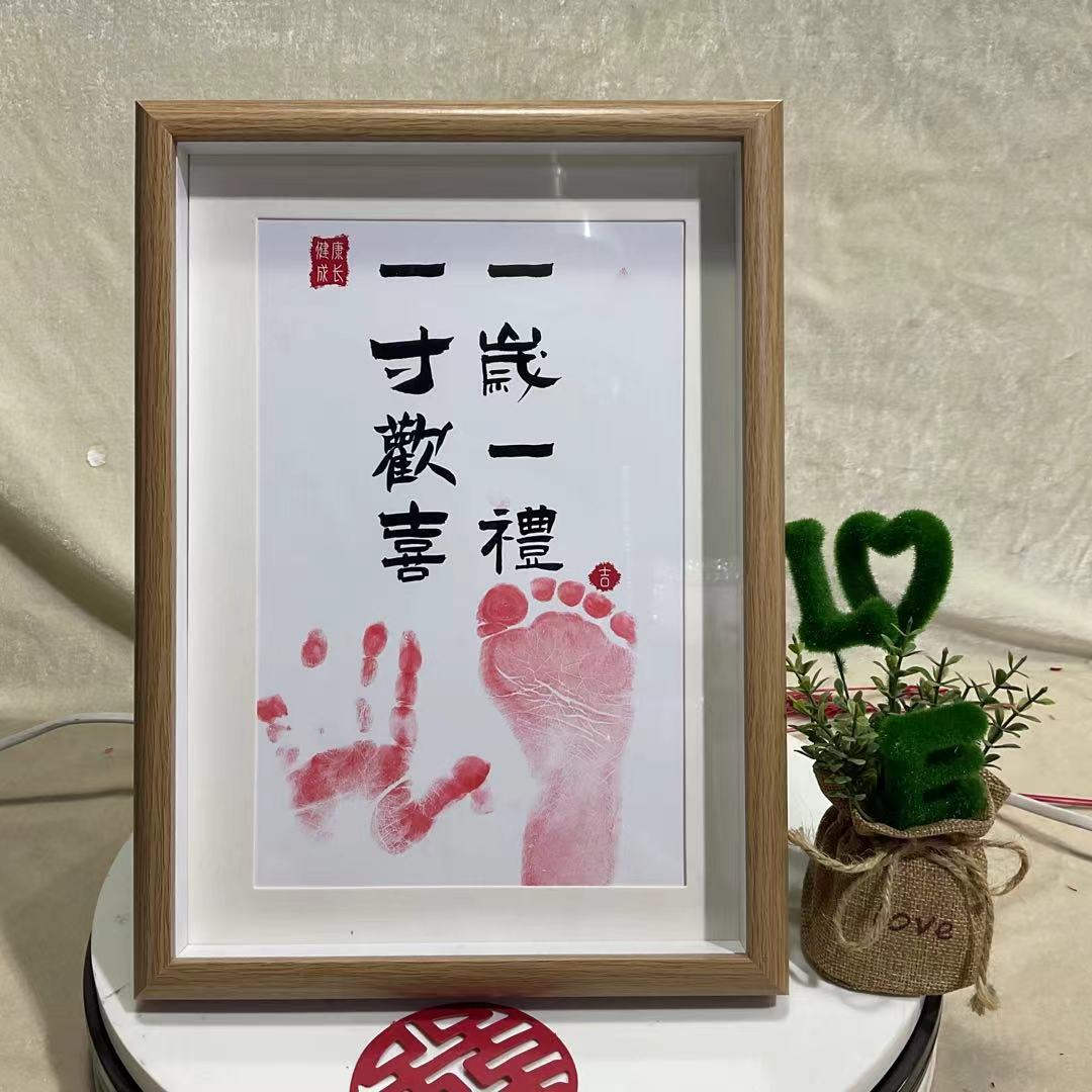 중공 액자 만족과 행복 손발자국 장식대 아기 돌 기념 손발자국 기념 만월백일 액자