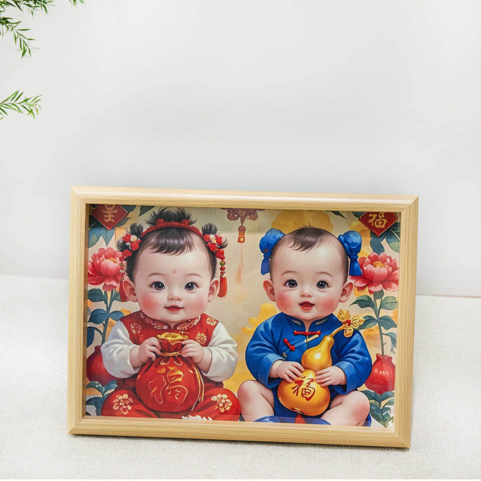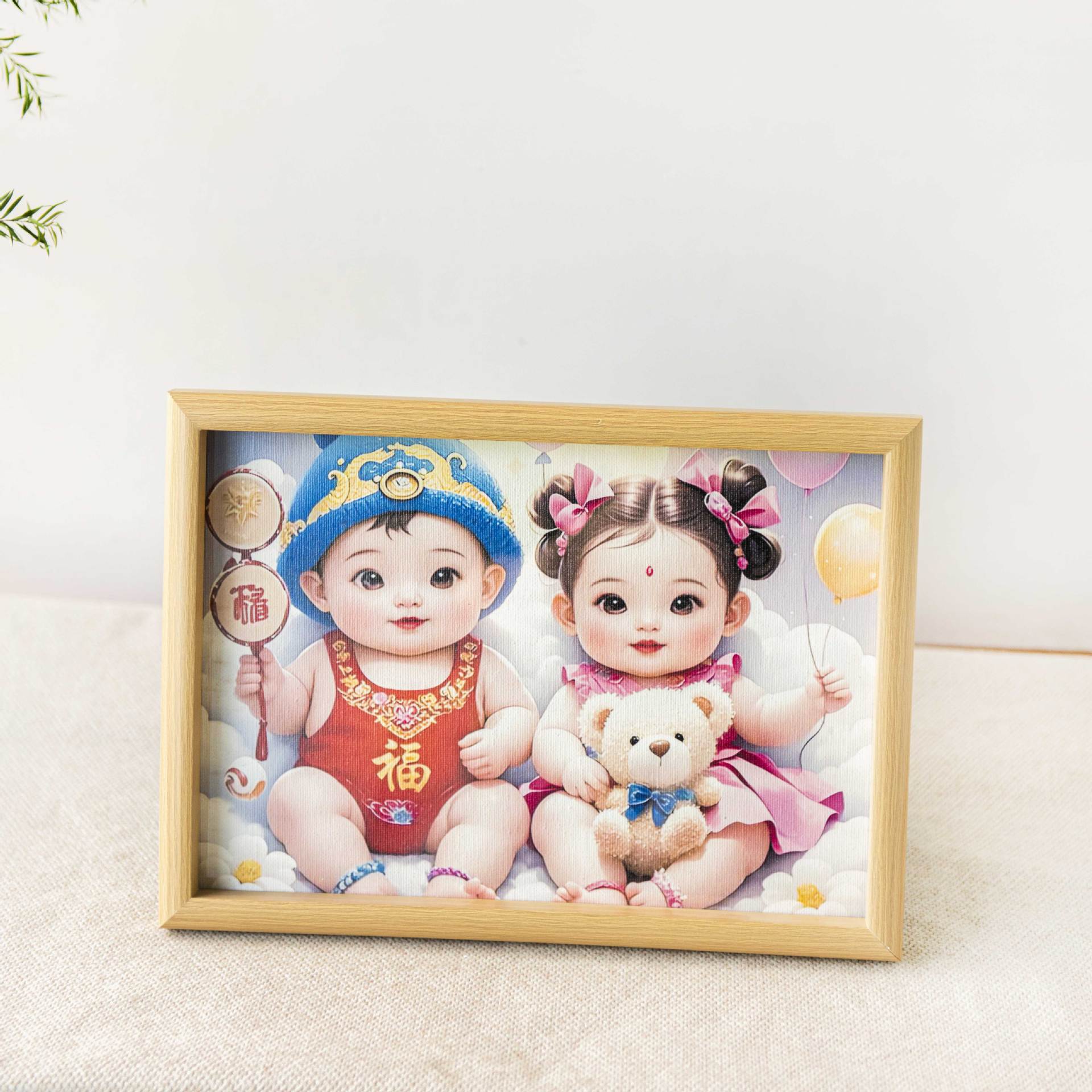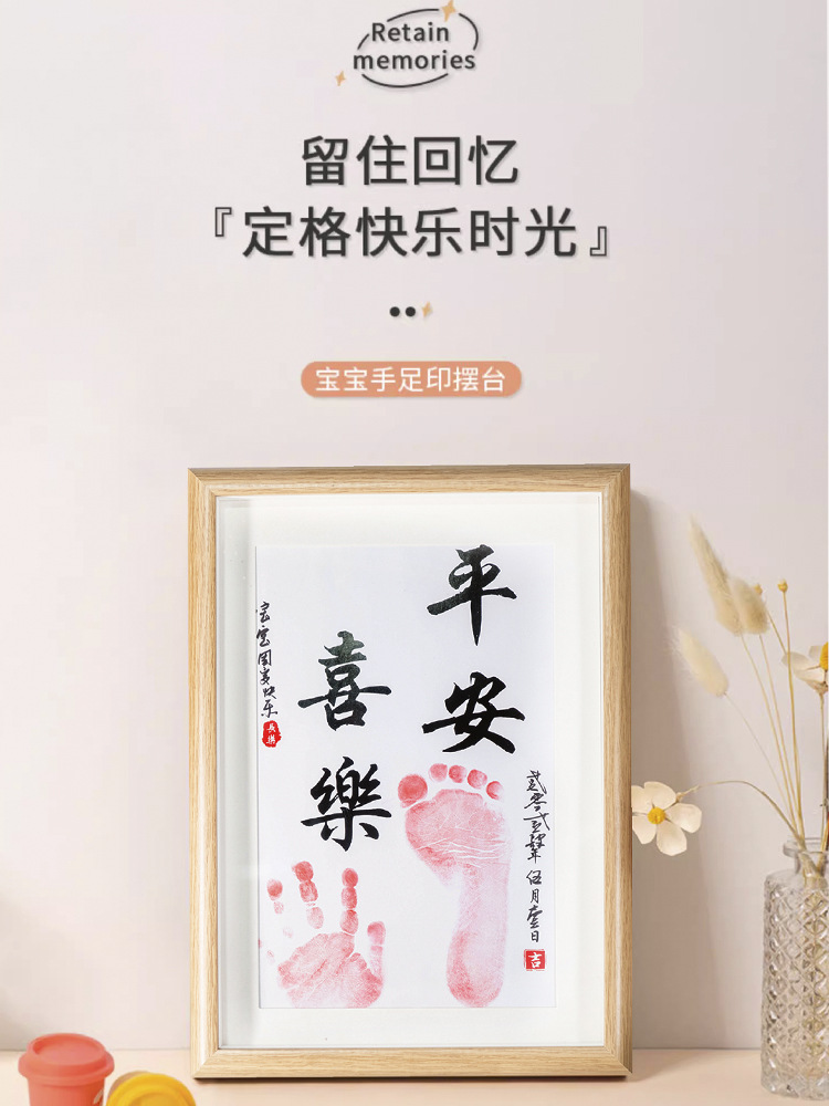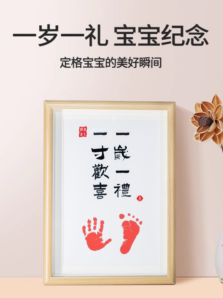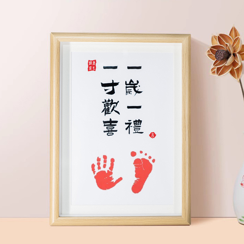 중공 액자 만족과 행복 손발자국 장식대 아기 돌 기념 손발자국 기념 만월백일 액자
