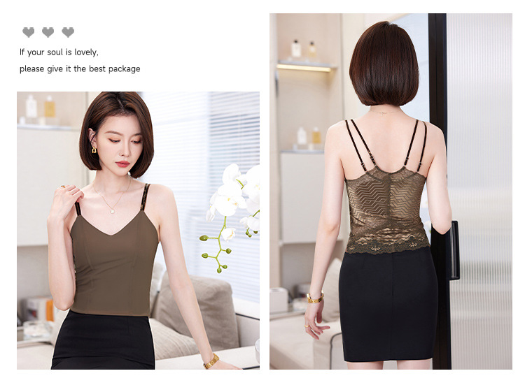 작은 카미솔 여성 내복 아름다운 뒤 여름 브래지어 가슴 패드 원피스 속옷 외부 착용 긴 블랙베이스 탑스토어 가기