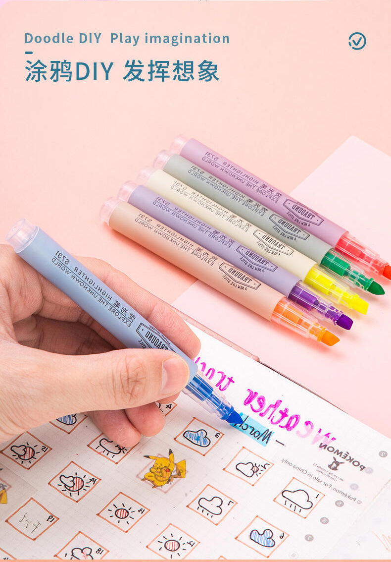 Deli S624 Highlighter 검토 학생 용 대용량 필기 펜 단일 헤드 형광 마커