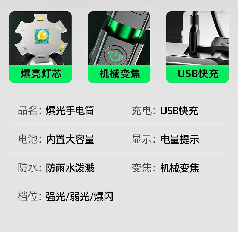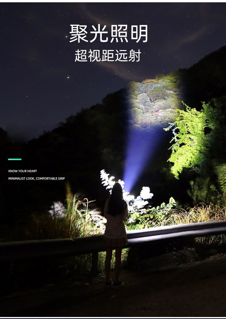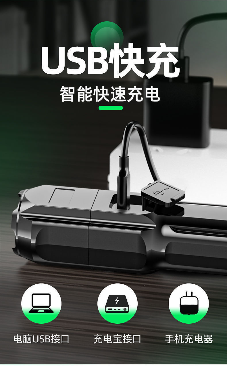 국경 간 LED 손전등 충전식 스포트라이트 장거리 휴대용 울트라 밝은 가정용 야외 손전등스토어 가기