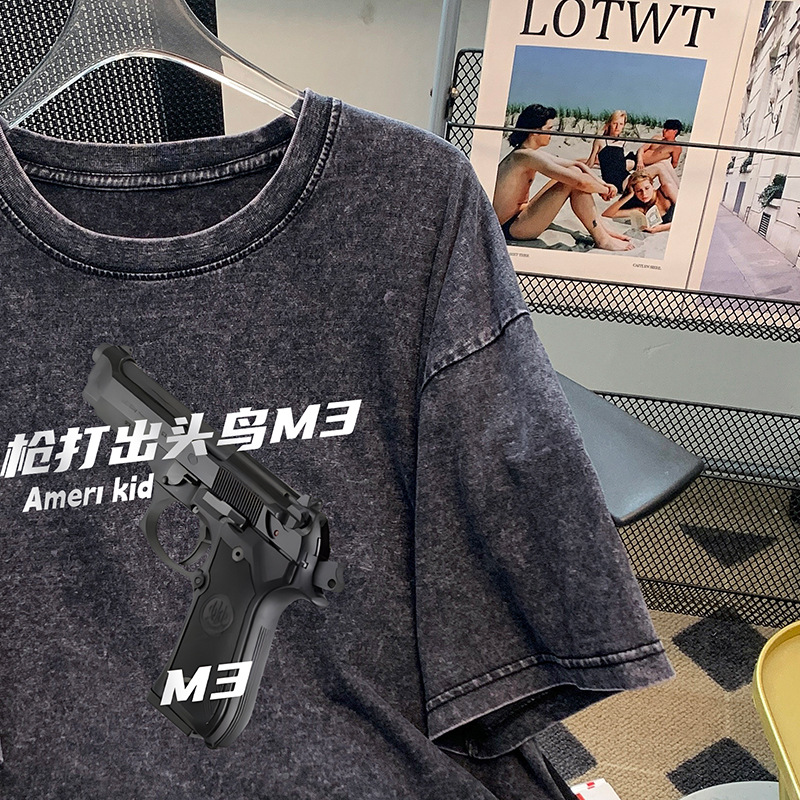 반팔 티셔츠 남성과 여성의 올드 록 플랜 인쇄 M3 유행 캐주얼 루즈 코튼 탑스토어 가기