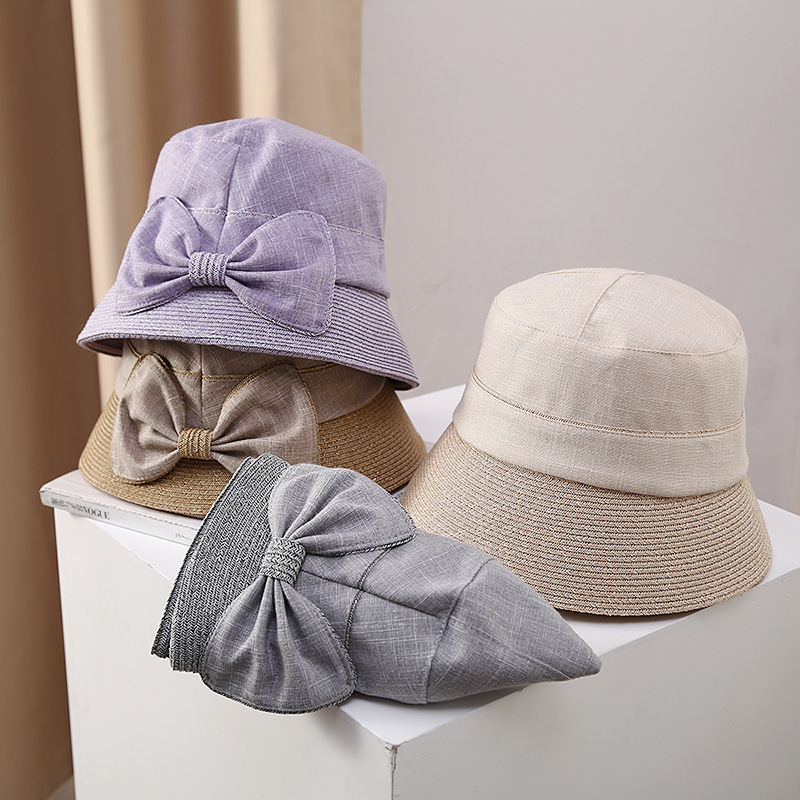 이순신 천 스티칭 활 여름 여성의 태양 보호 분지 모자 패션 캐주얼 태양 그늘 천 모자 야외 어부 모자