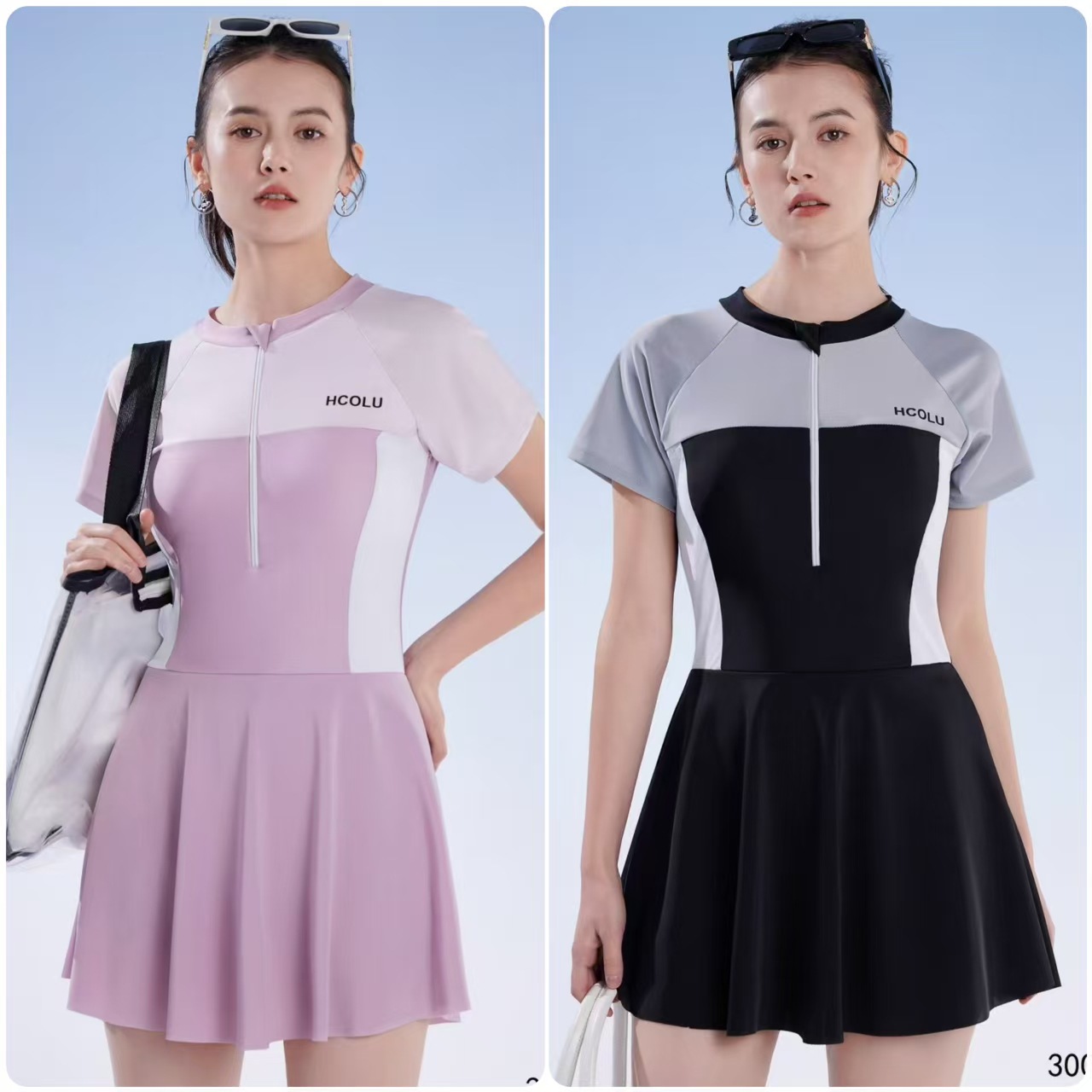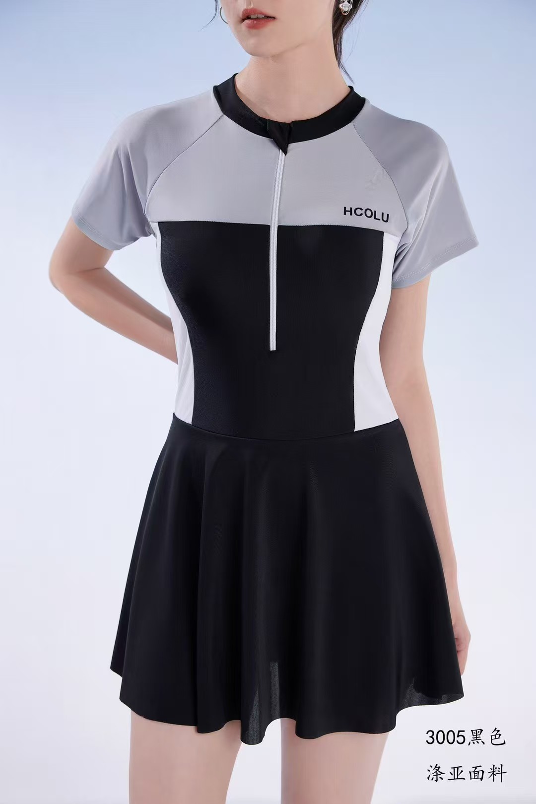 2024 새로운 원피스 짧은 소매 지퍼 스커트 스포츠 보수 수영 세트 수영복 32098스토어 가기