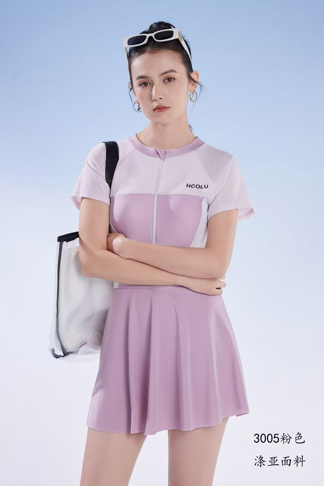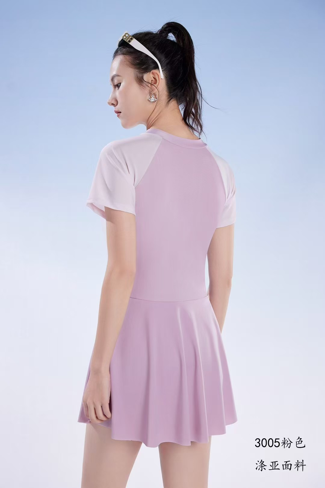 2024 새로운 원피스 짧은 소매 지퍼 스커트 스포츠 보수 수영 세트 수영복 32098