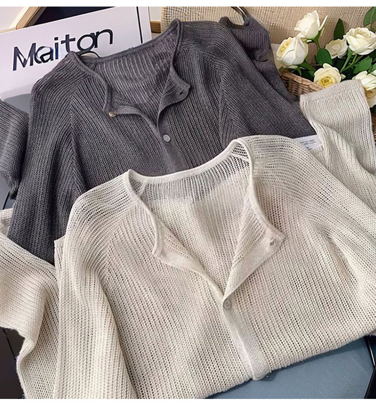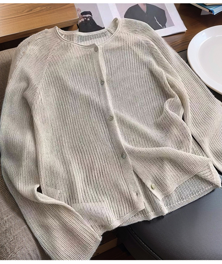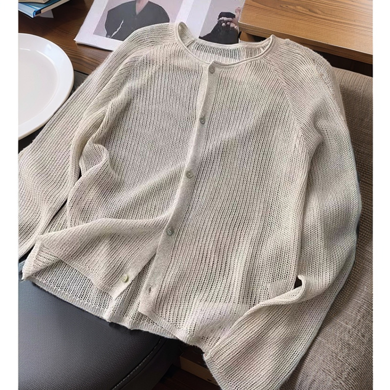 중공 둥근 목 니트 카디건 여성 여름 새 스타일 아우터 숄 재킷 얇은 탑 에어컨 블라우스스토어 가기
