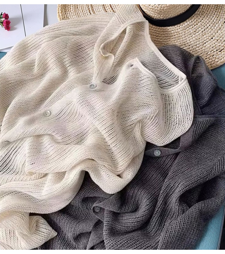 중공 둥근 목 니트 카디건 여성 여름 새 스타일 아우터 숄 재킷 얇은 탑 에어컨 블라우스
