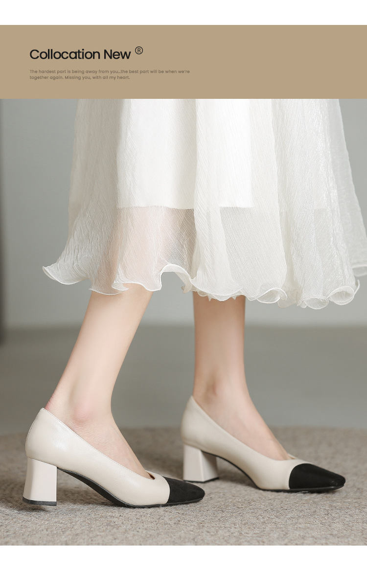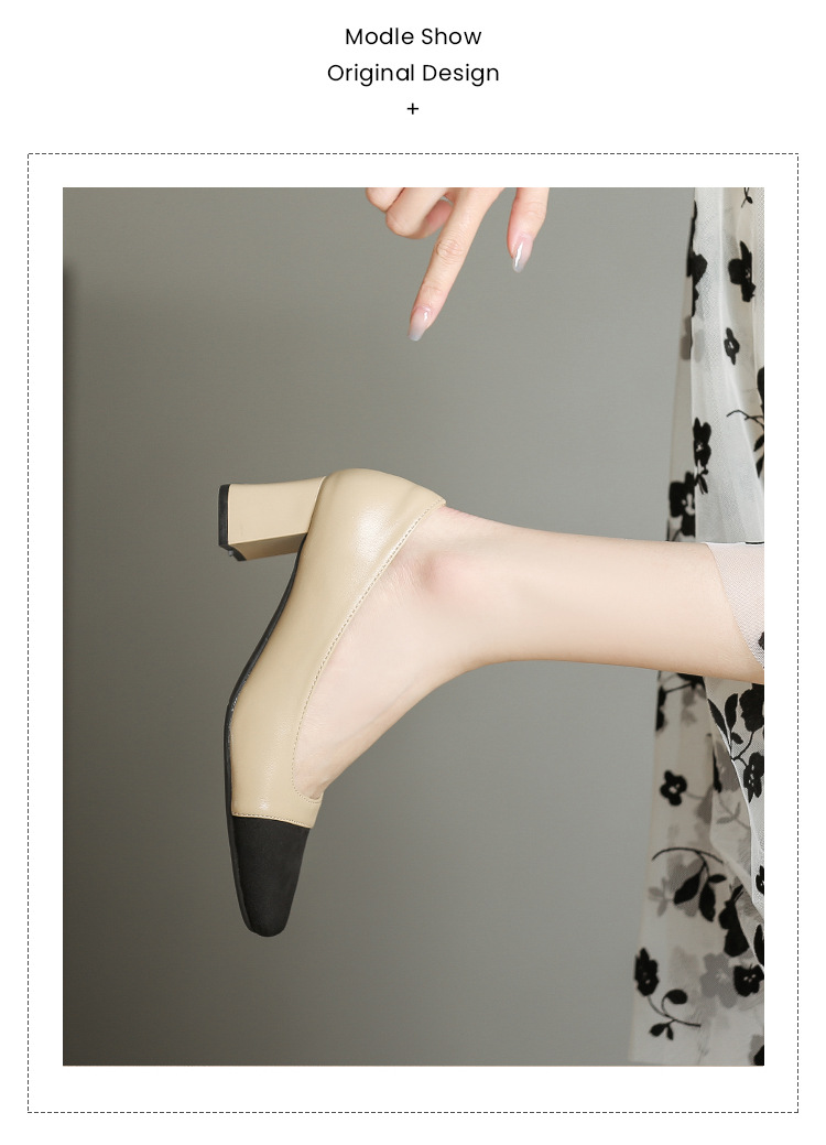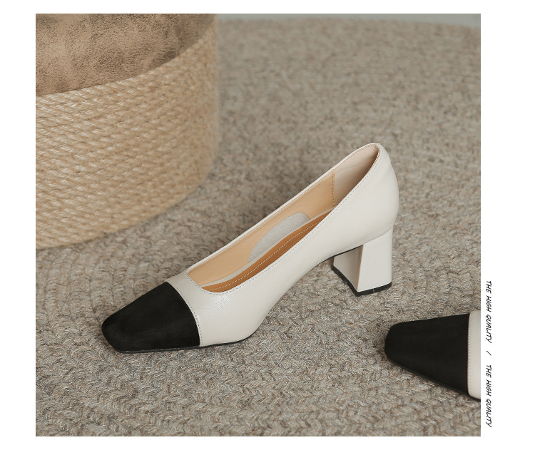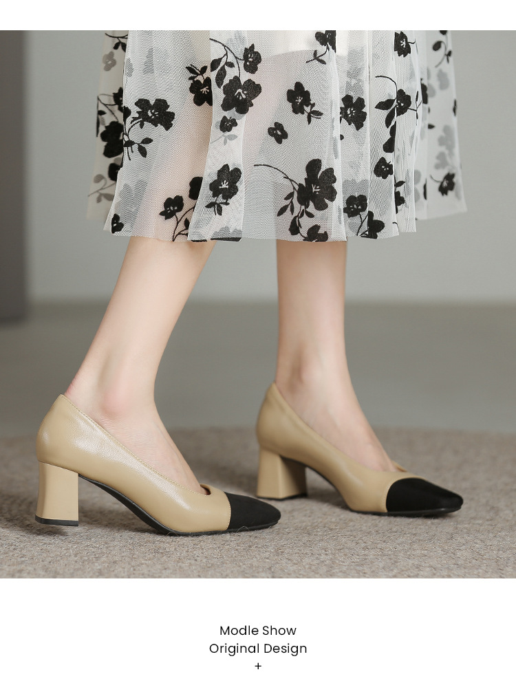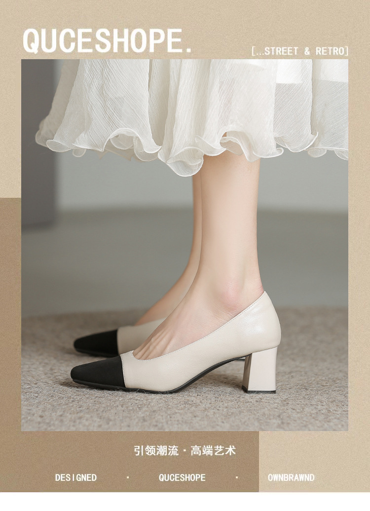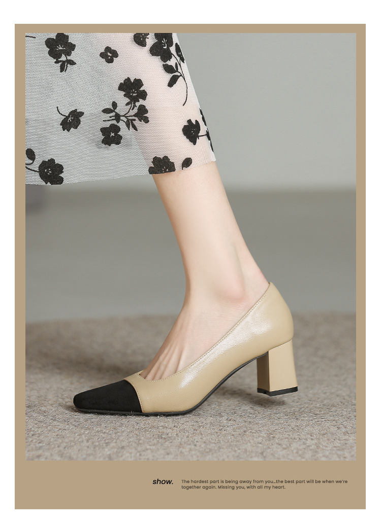 U8399 부드러운 두꺼운 뒤꿈치 소 가죽 신발 여성의 붉은 책 잔디 폭발 작은 향기로운 스타일 여성 신발과 일치하는 5 cm 색상