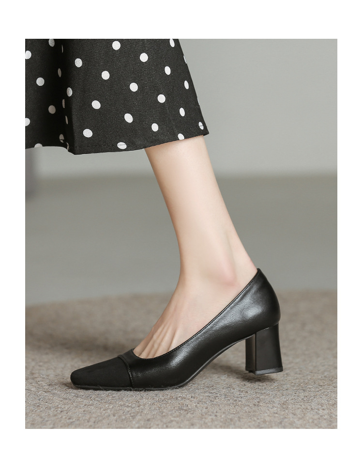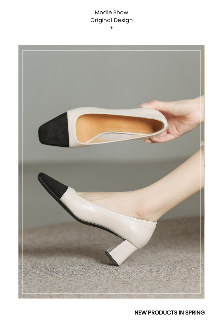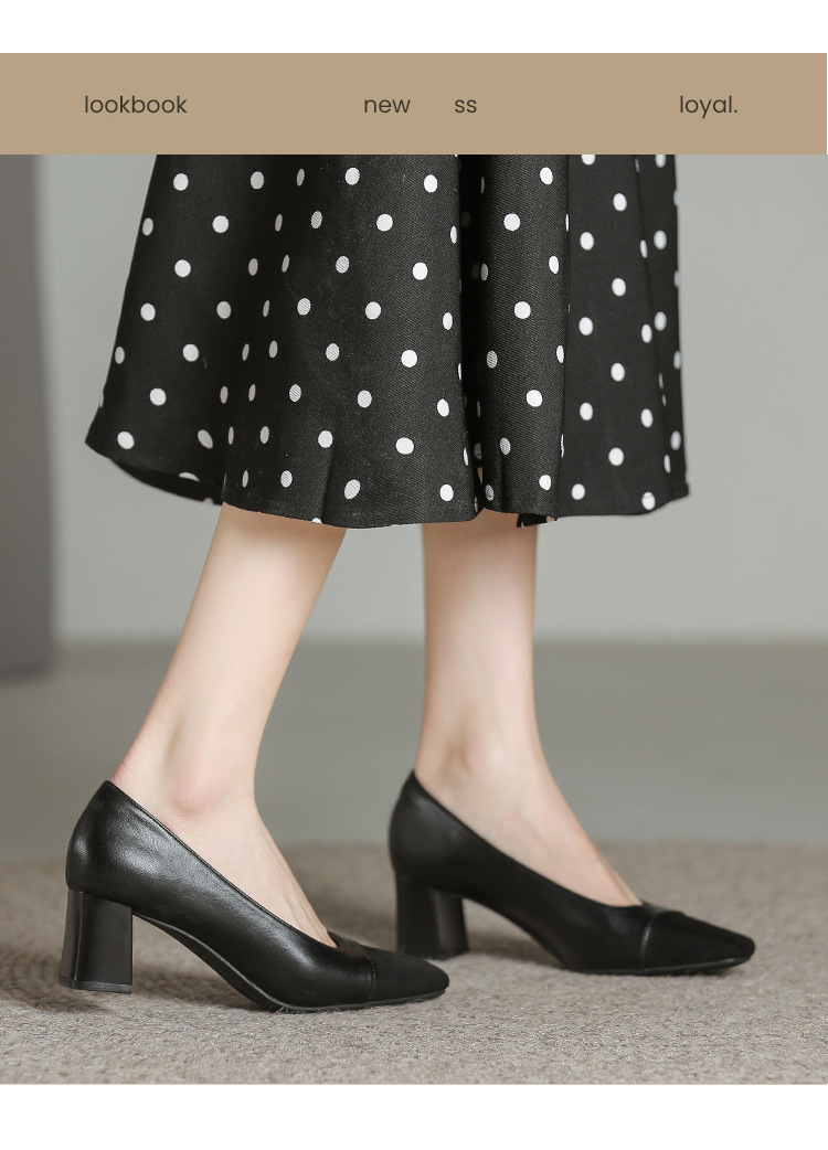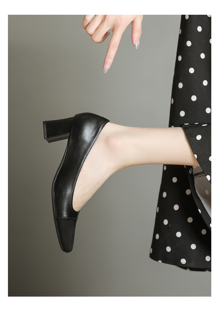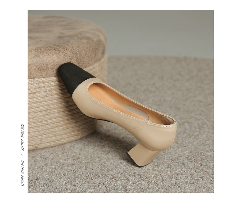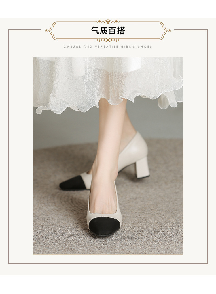 U8399 부드러운 두꺼운 뒤꿈치 소 가죽 신발 여성의 붉은 책 잔디 폭발 작은 향기로운 스타일 여성 신발과 일치하는 5 cm 색상