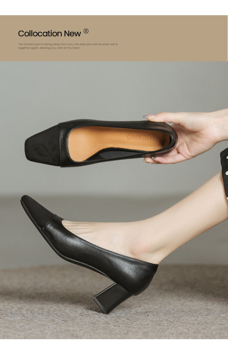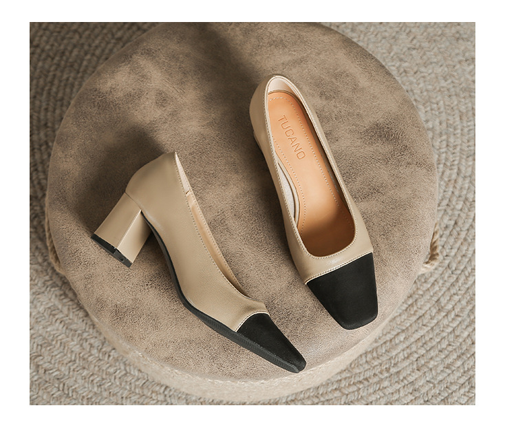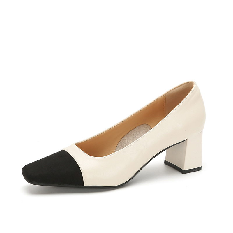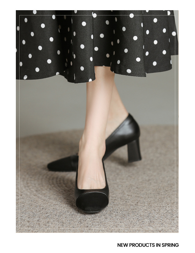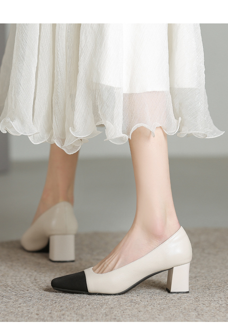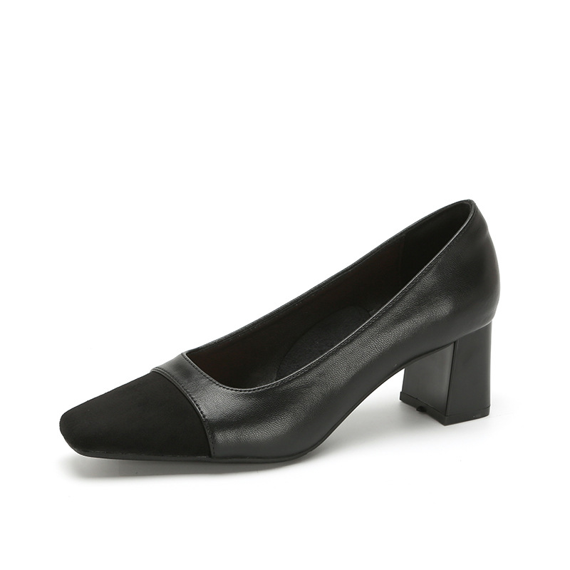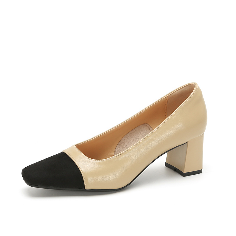 U8399 부드러운 두꺼운 뒤꿈치 소 가죽 신발 여성의 붉은 책 잔디 폭발 작은 향기로운 스타일 여성 신발과 일치하는 5 cm 색상