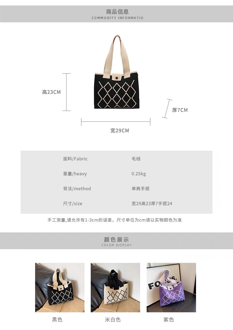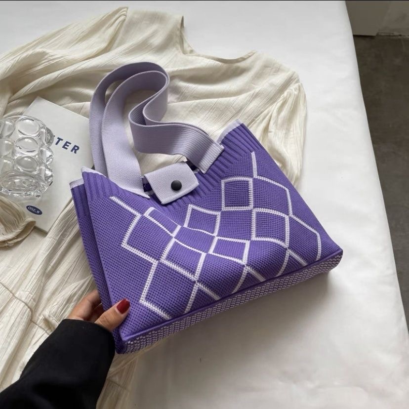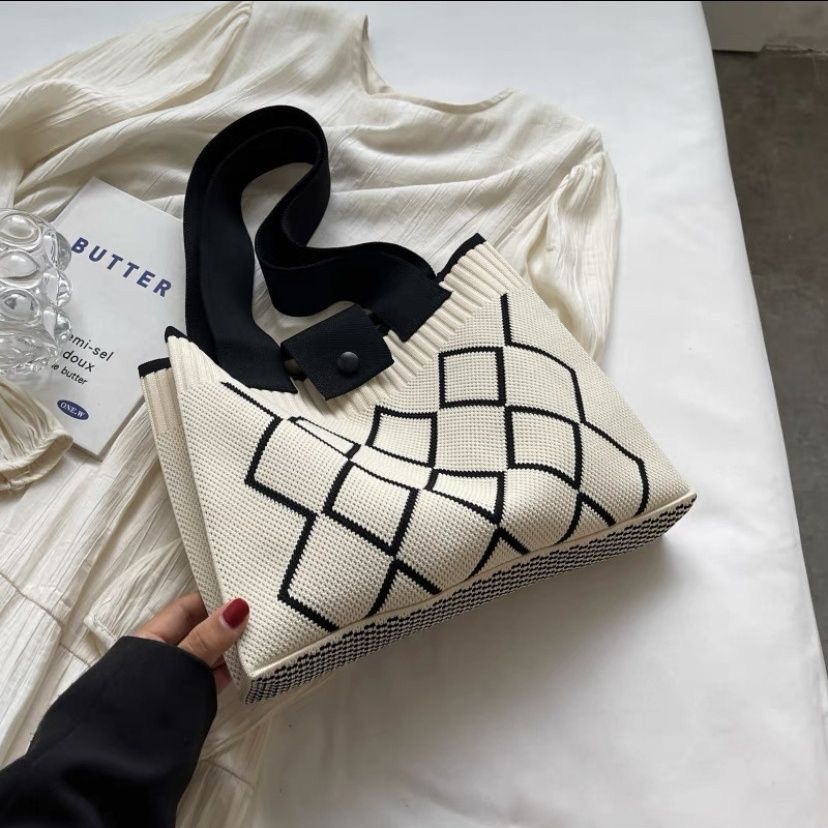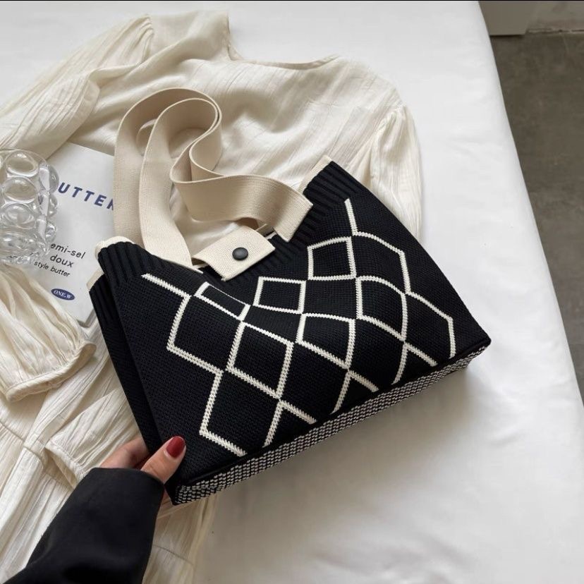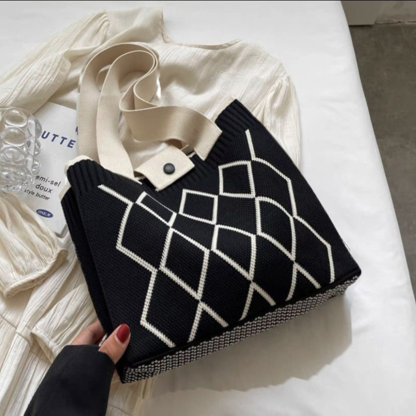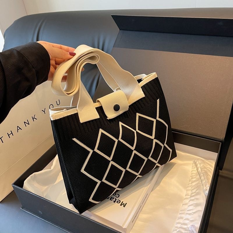 한국 스타일 니트 울 백 여성 2024 새로운 스타일 유행 대용량 핸드백 모든 경기 통근 어깨 가방스토어 가기