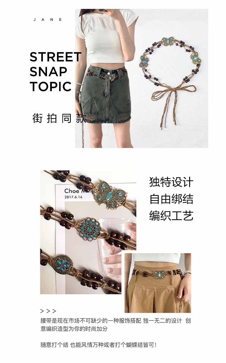 보헤미안 민족 허리 체인 여성 벨트 문학 복고풍 원피스 액세서리 패션 나비 허리 로프 도매스토어 가기