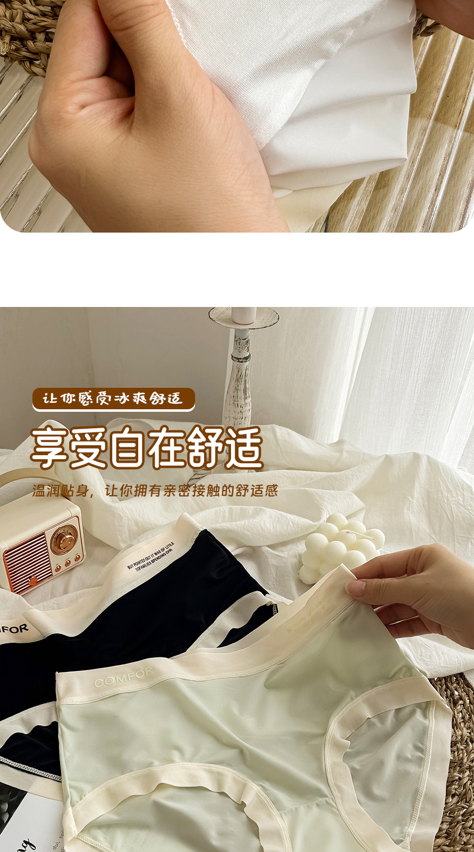 초박형 아이스 실크 이음매없는 속옷 여성의 7A 면 미드 허리 마스크 바지 간단한 통기성 일본 여자 브리프스토어 가기