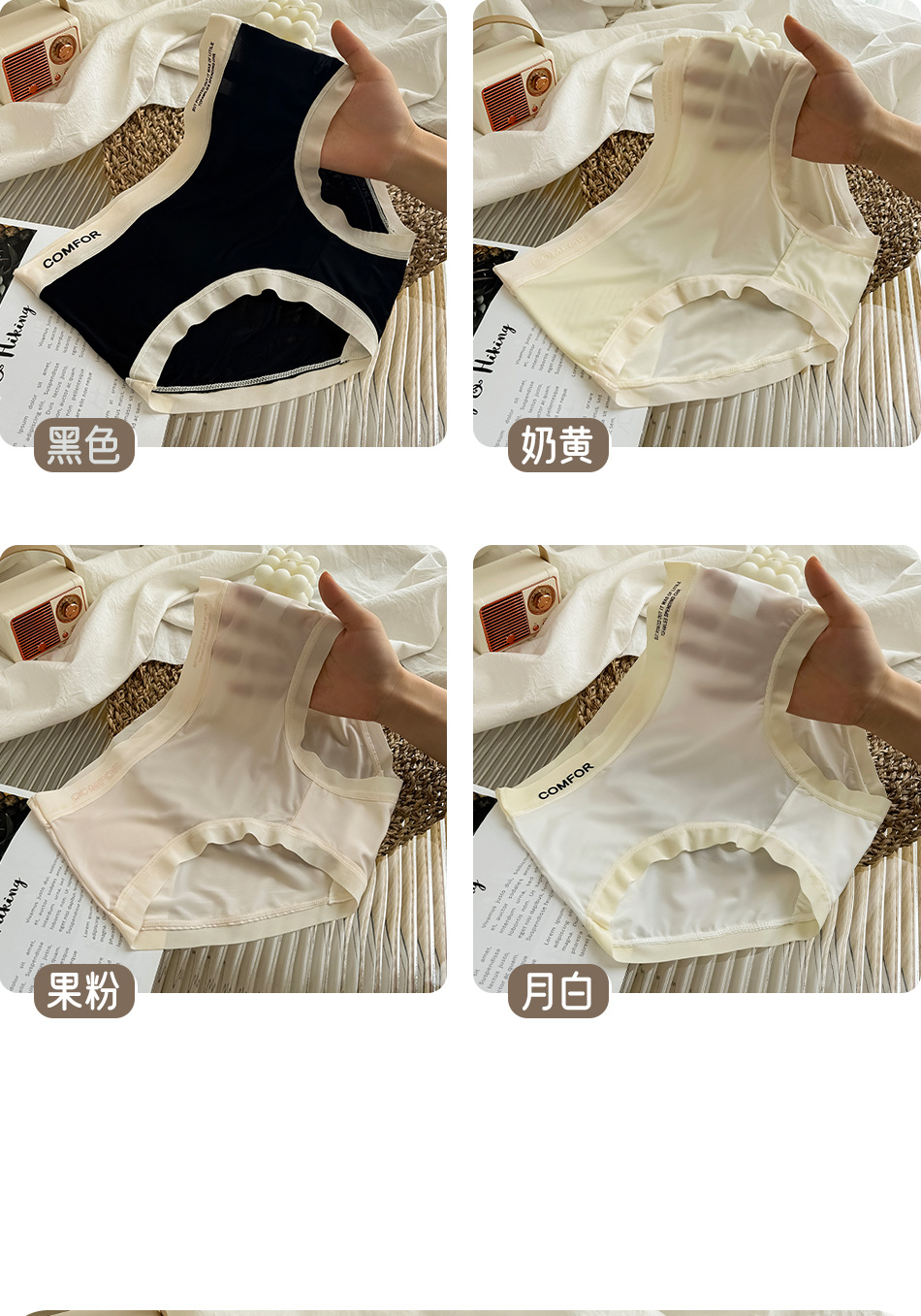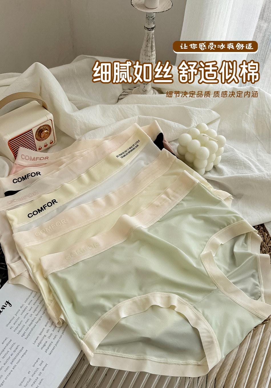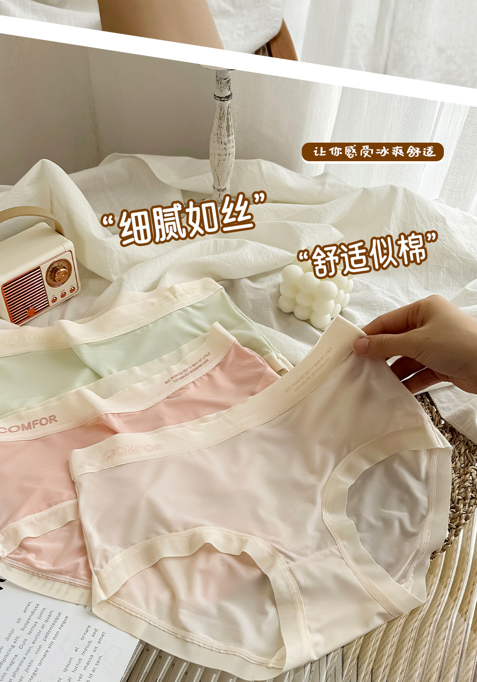 초박형 아이스 실크 이음매없는 속옷 여성의 7A 면 미드 허리 마스크 바지 간단한 통기성 일본 여자 브리프