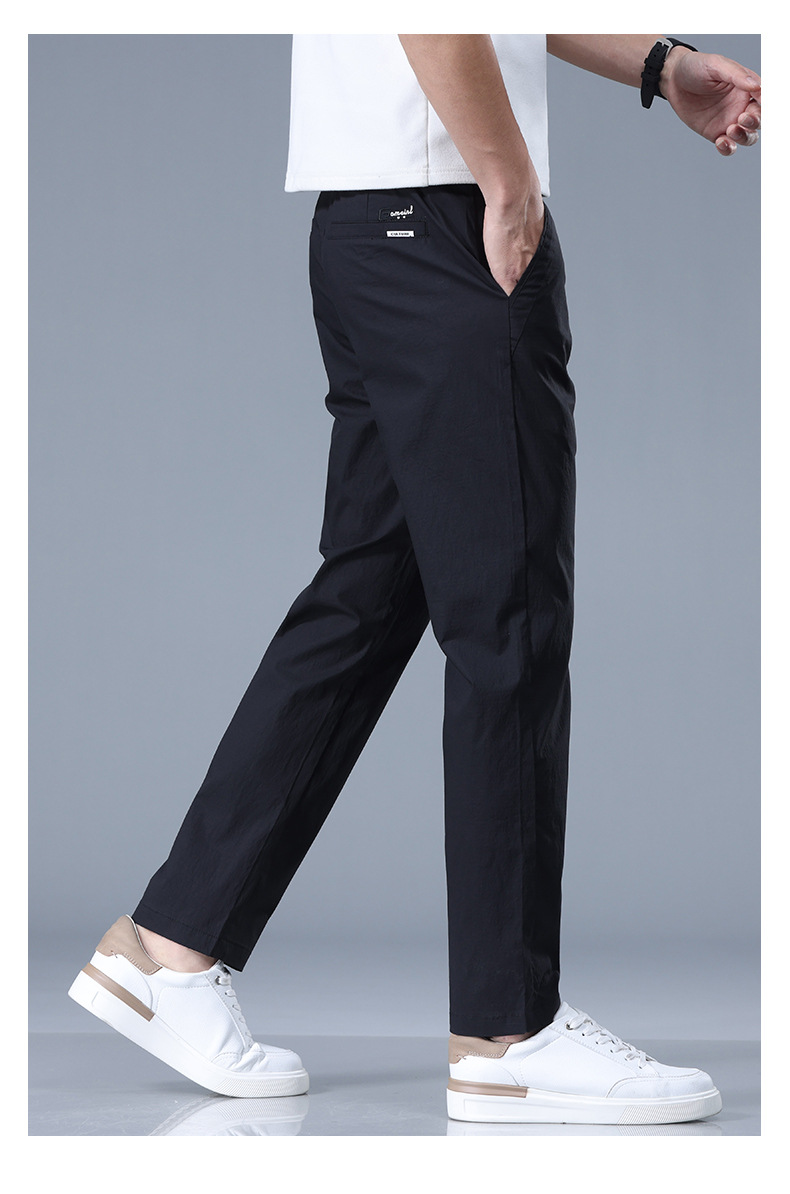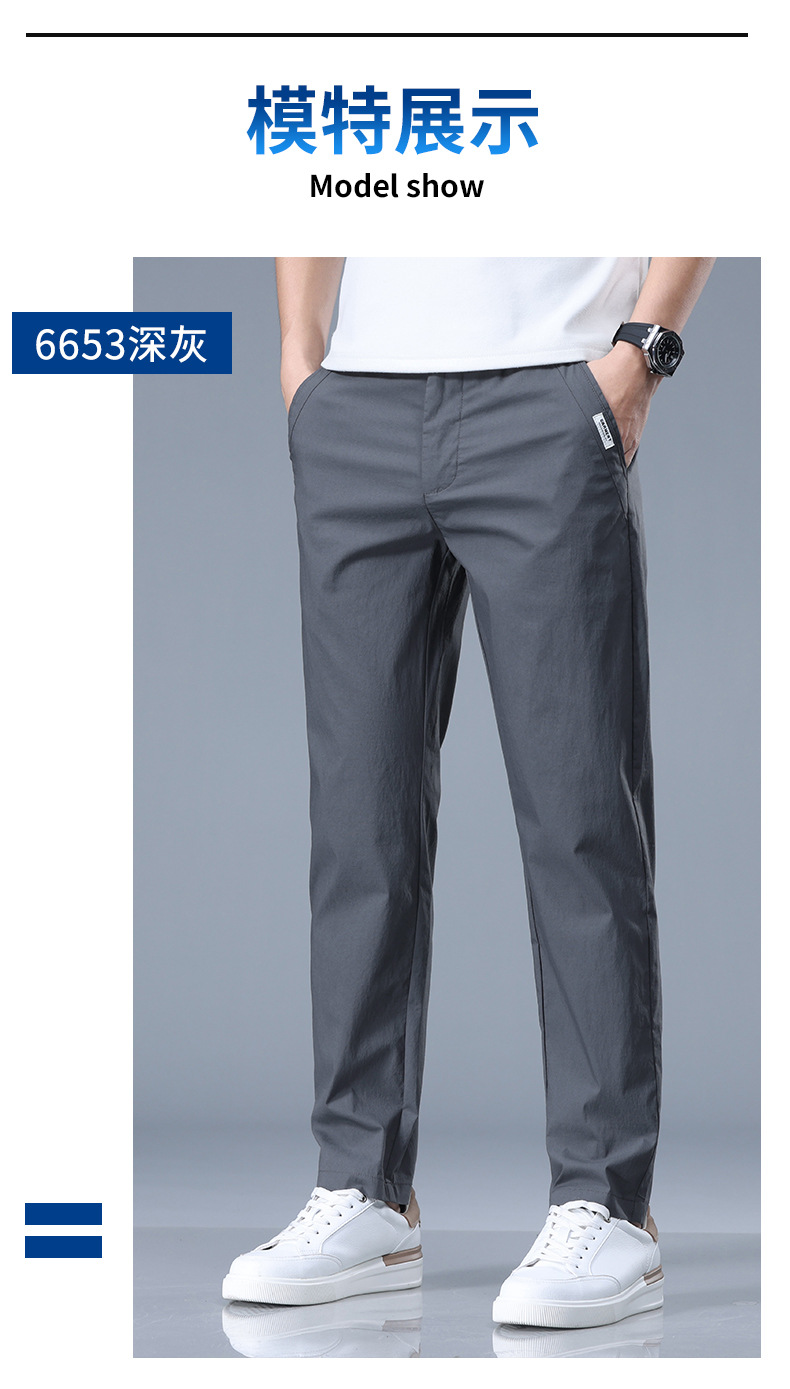아이스 실크 캐주얼 바지 남자 여름 얇은 유행 브랜드 느슨한 스트레이트 스포츠 긴 바지 2024 새로운 스트레치 바지스토어 가기