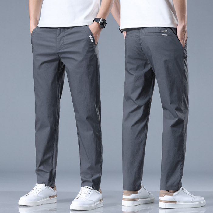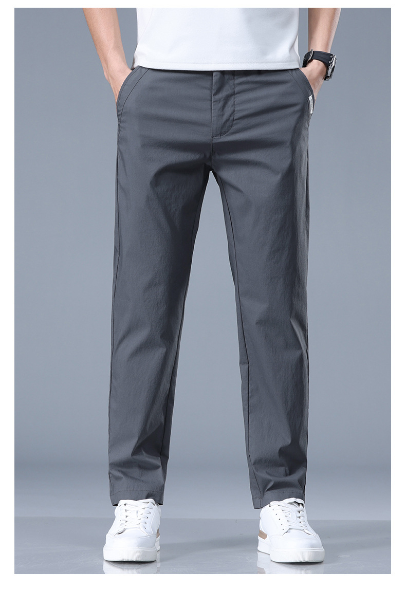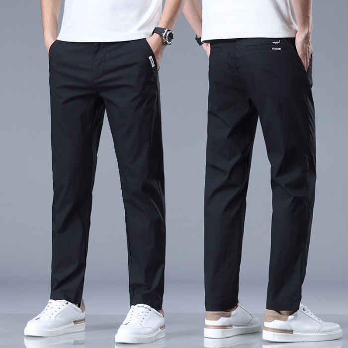 아이스 실크 캐주얼 바지 남자 여름 얇은 유행 브랜드 느슨한 스트레이트 스포츠 긴 바지 2024 새로운 스트레치 바지