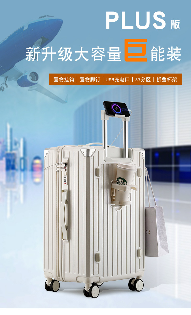 다기능 방폭 지퍼 박스 여행가방 남녀공용 충전식 트롤리 박스 튼튼한 대용량 여행가방 기내용 캐리어스토어 가기