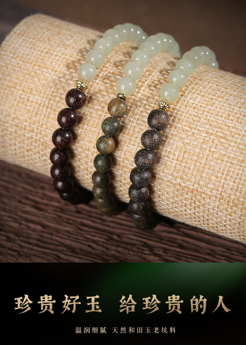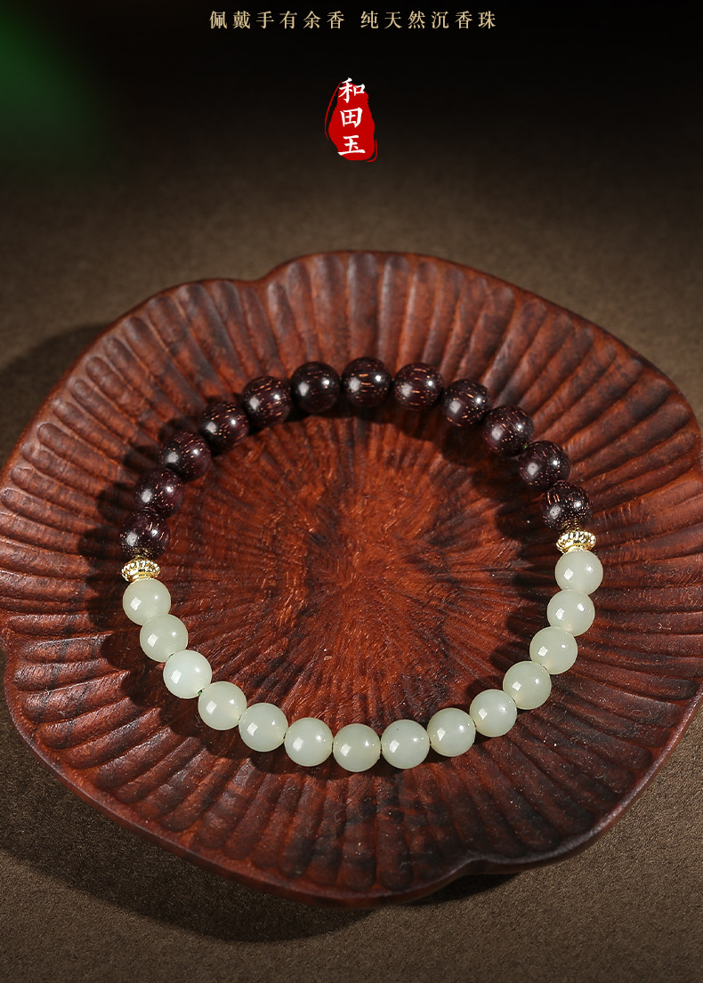 Agarwood 팔찌 여성 브루나이 Agarwood 제이드 더블 스타일 팔찌 로프 레드 샌달 우드 써니 워터 천연 헤티안 옥 팔찌스토어 가기