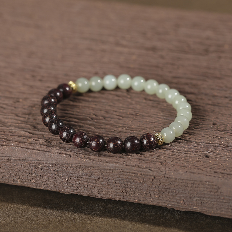 Agarwood 팔찌 여성 브루나이 Agarwood 제이드 더블 스타일 팔찌 로프 레드 샌달 우드 써니 워터 천연 헤티안 옥 팔찌