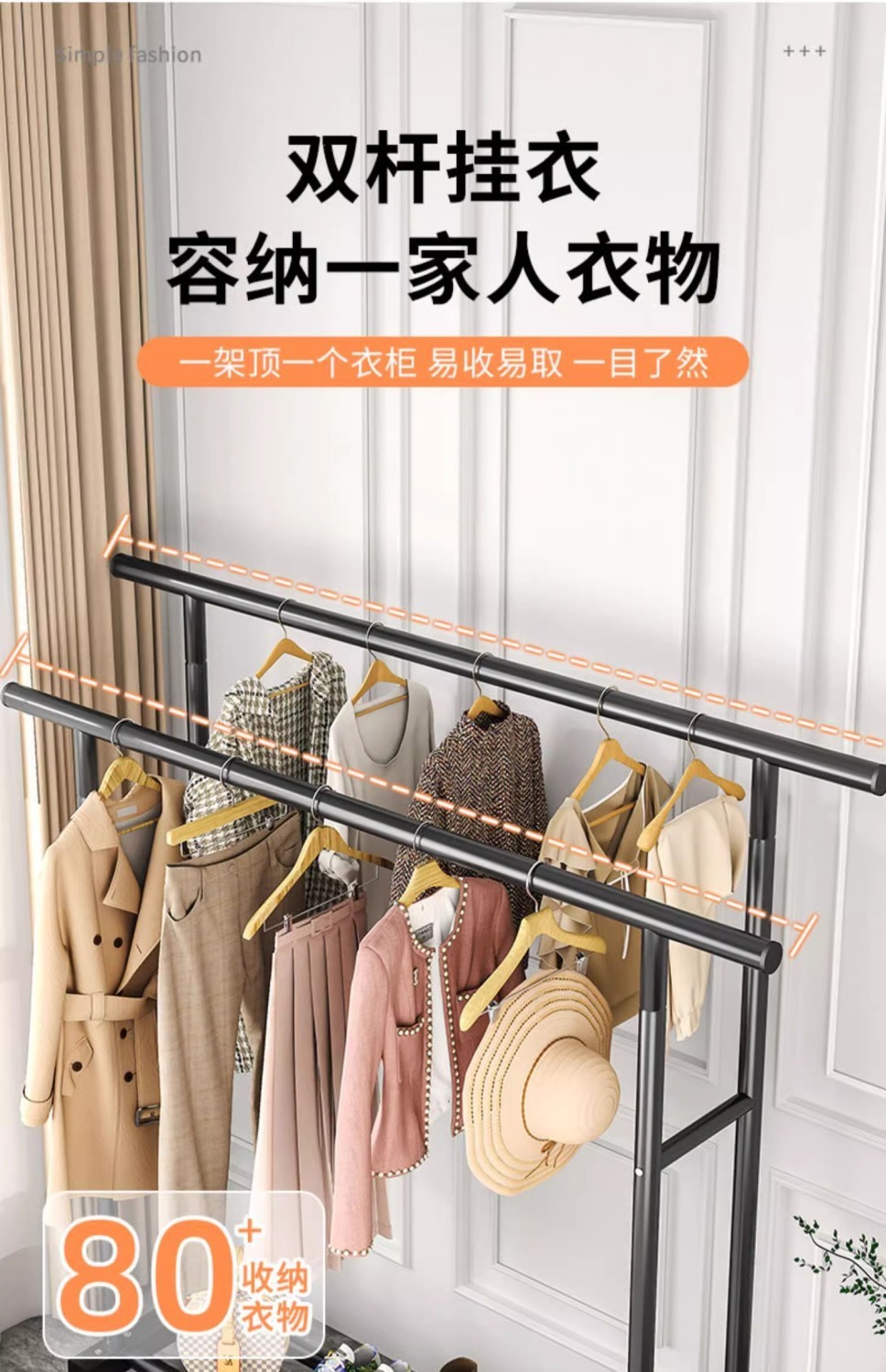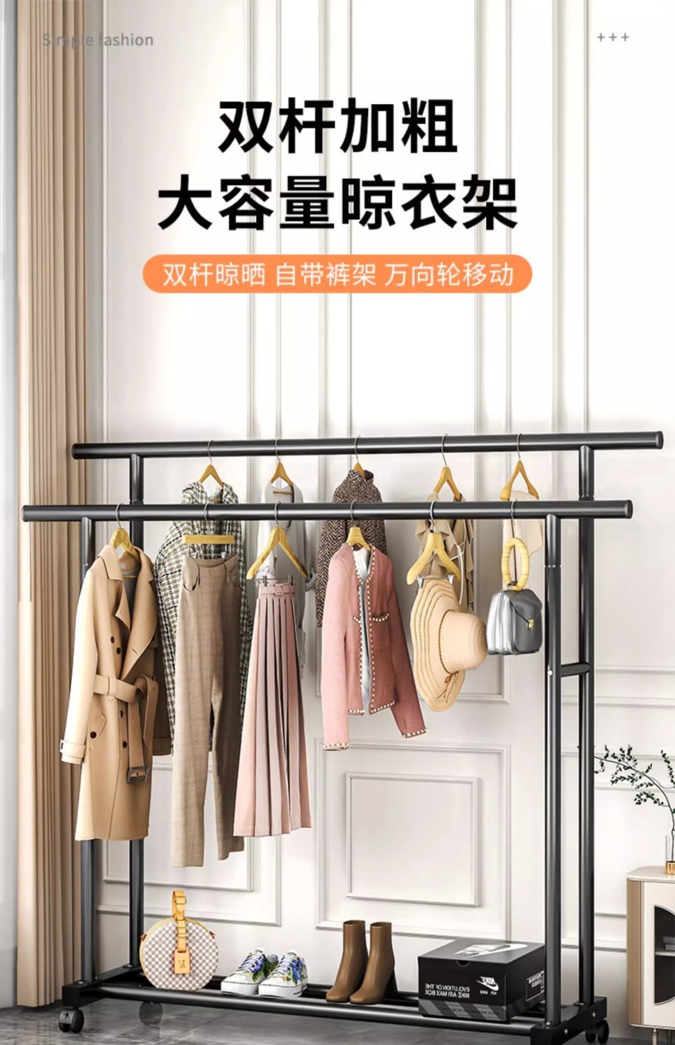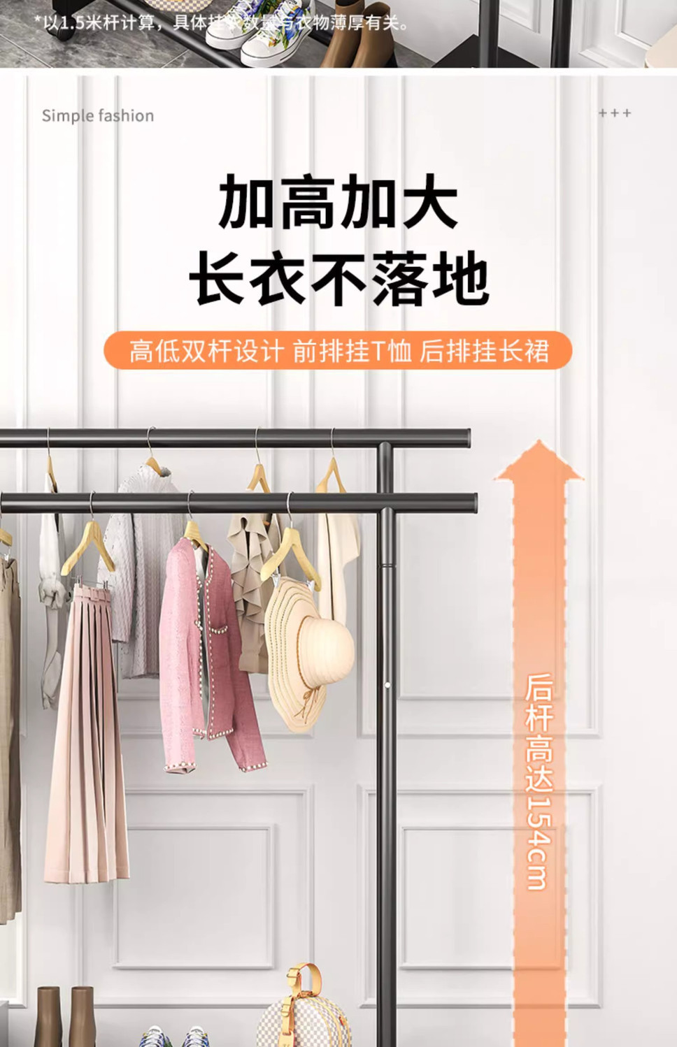 간단한 옷 옷걸이 바닥 수직 코트 랙 더블로드 건조 랙 실내 옷 옷걸이 건조 랙 기숙사 옷 옷걸이