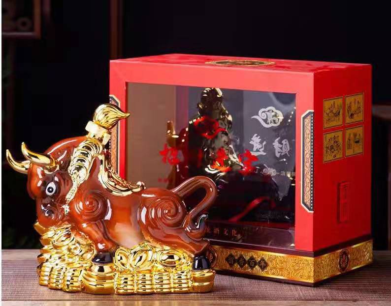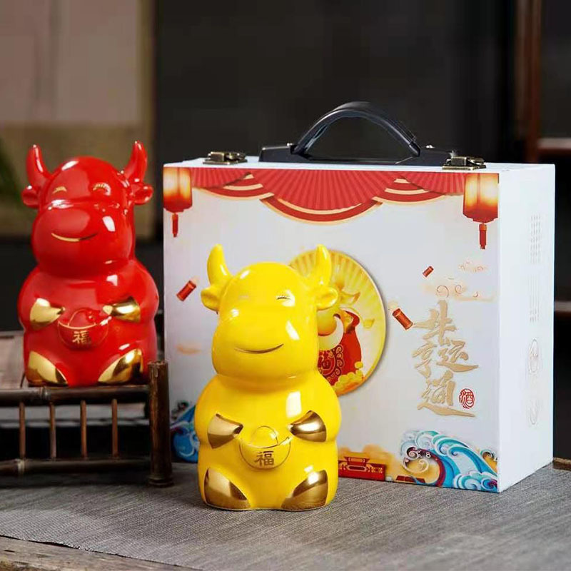 Jingdezhen 세라믹 와인 병 새로운 3kg 5kg 에나멜 컬러 소 공예 조디악 소 장식 밀봉 화이트 와인 병스토어 가기