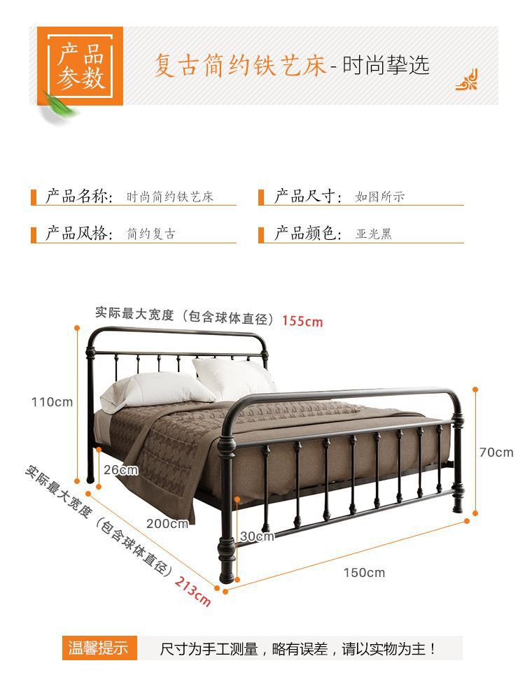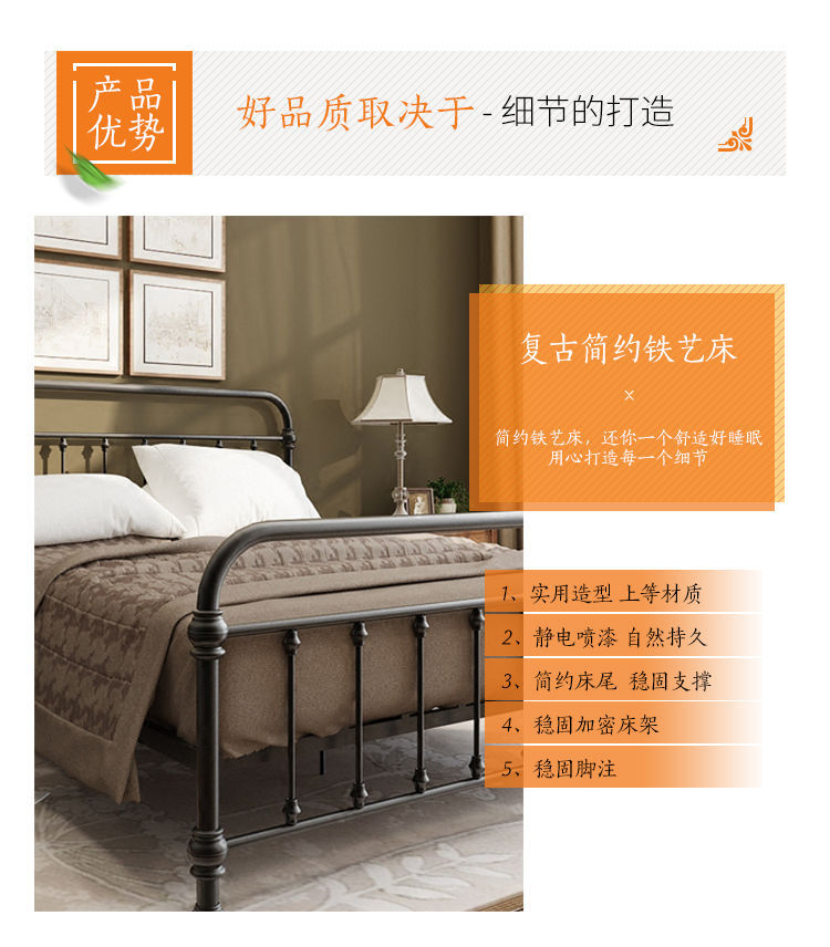 부티크 아이언 프레임 침대 마스터 침실 아이언 침대 더블 침대 아파트 아이언 침대 1.8 m 침대 선반 임대 룸 아이언 침대 1.5 m