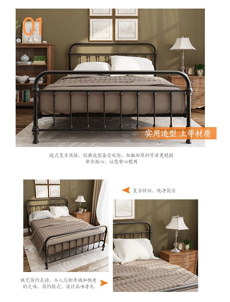 부티크 아이언 프레임 침대 마스터 침실 아이언 침대 더블 침대 아파트 아이언 침대 1.8 m 침대 선반 임대 룸 아이언 침대 1.5 m스토어 가기