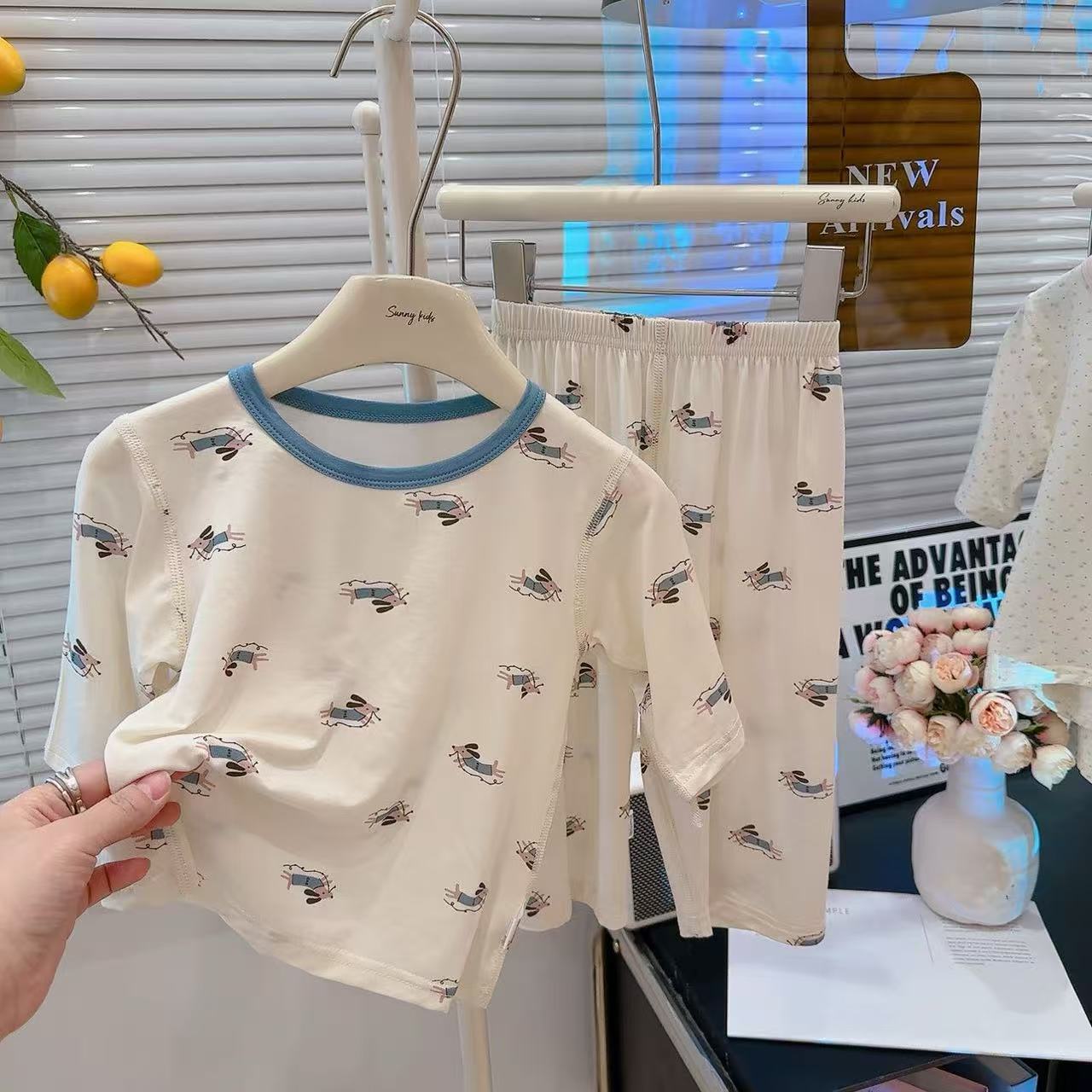어린이 홈웨어 세트 2025 여름 신상 아기 옷 남아 여아 7부 소매 에어컨 옷 잠옷