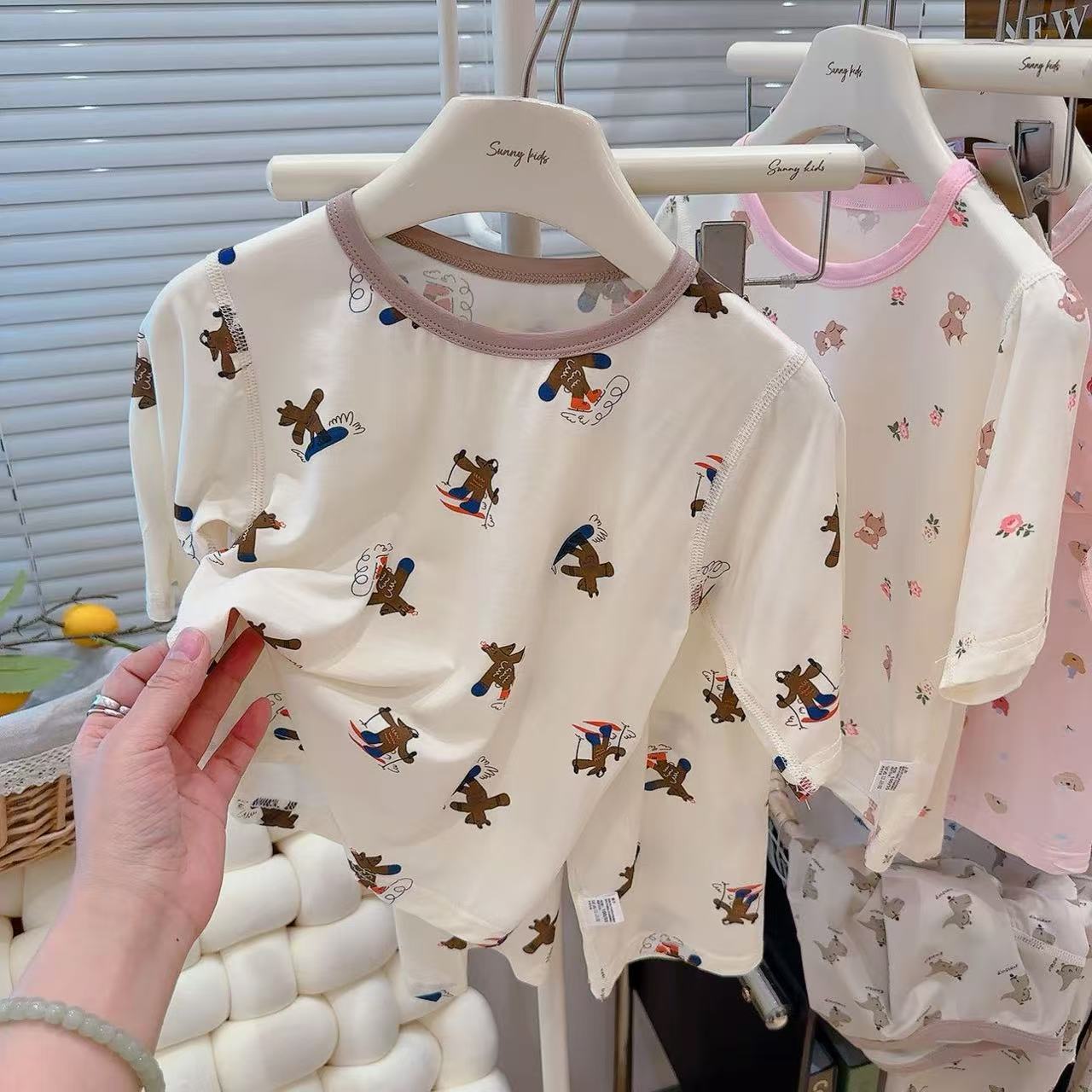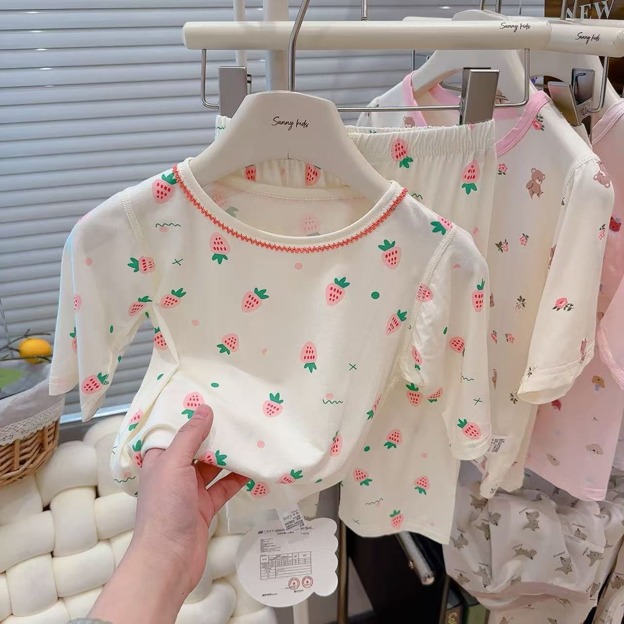 어린이 홈웨어 세트 2025 여름 신상 아기 옷 남아 여아 7부 소매 에어컨 옷 잠옷스토어 가기