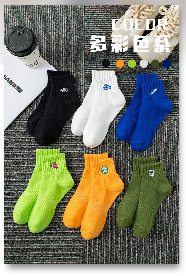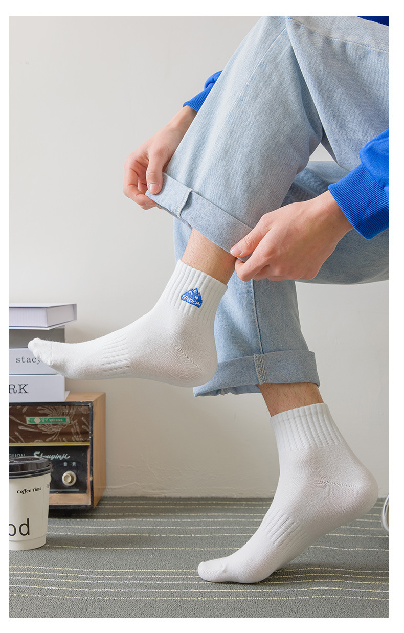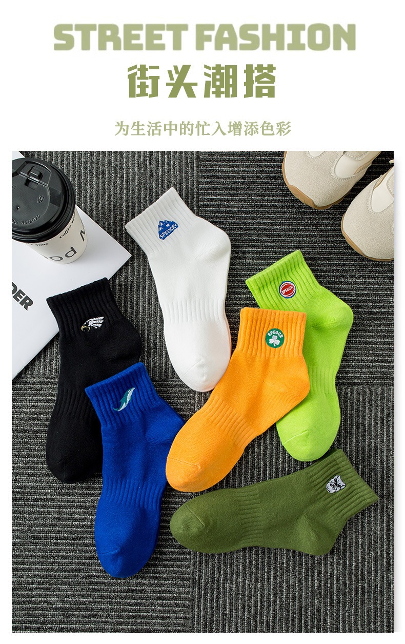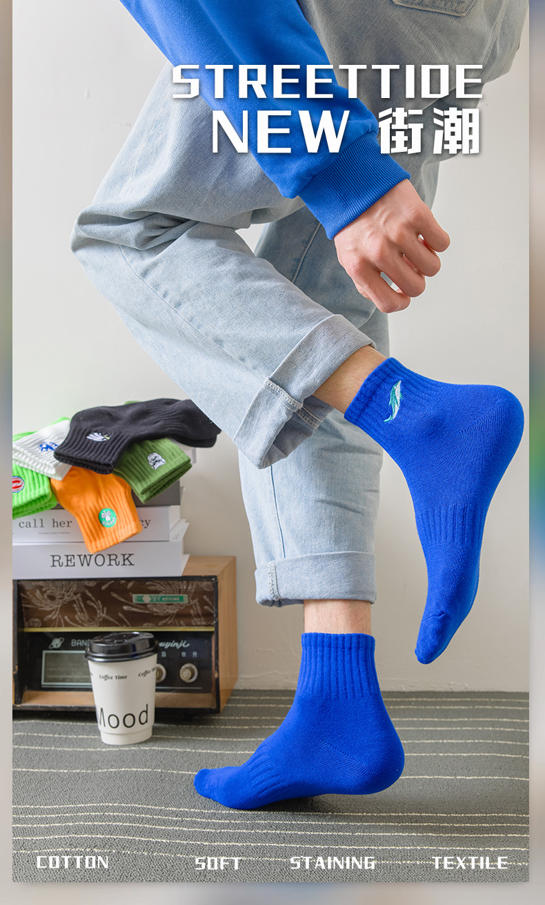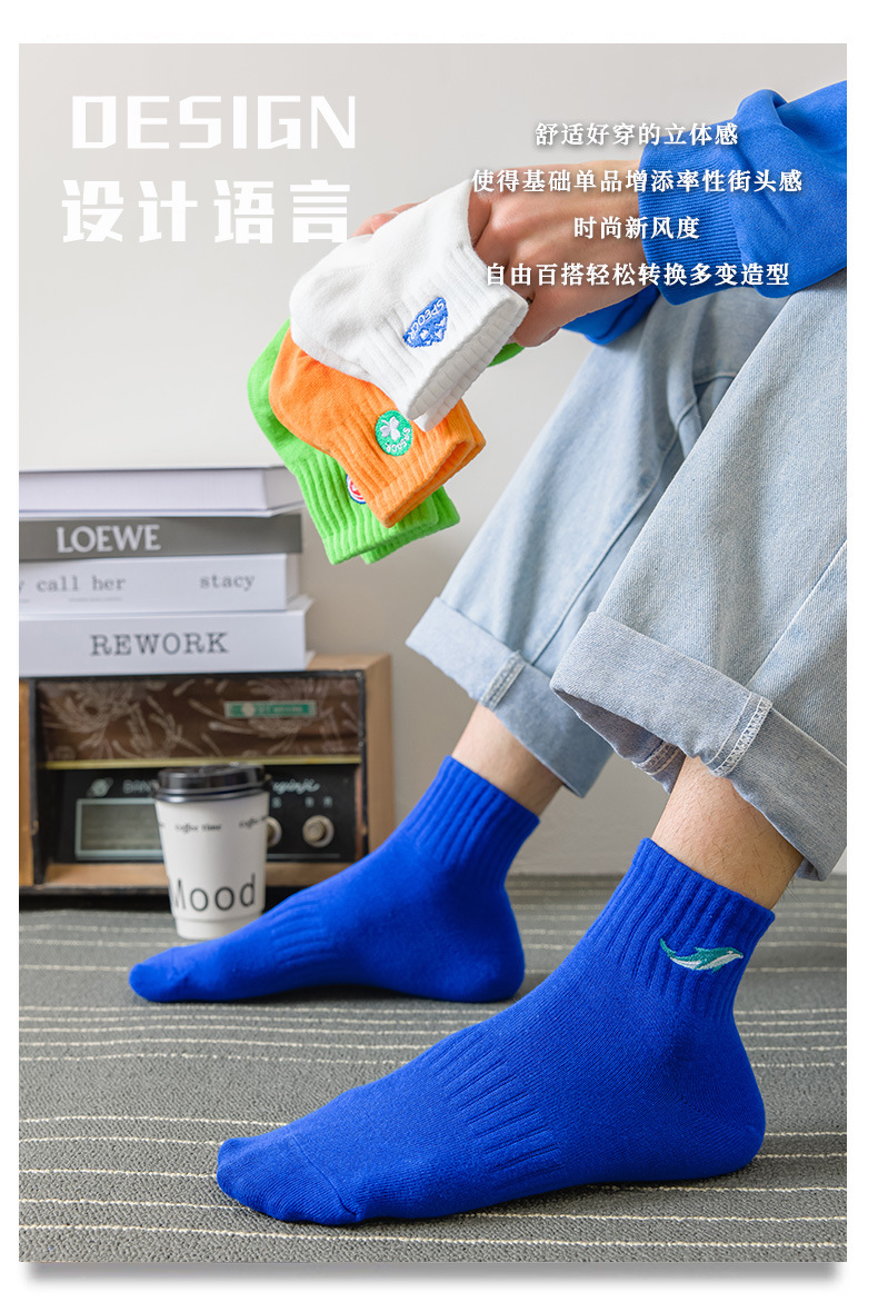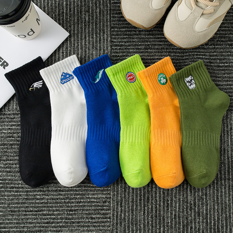 재고 세대 양말 남성 중간 길이 양말 자수 면 양말, 트렌디 한 일본식 간단한 스포츠 겉옷 스타킹은 땀을 흡수합니다.