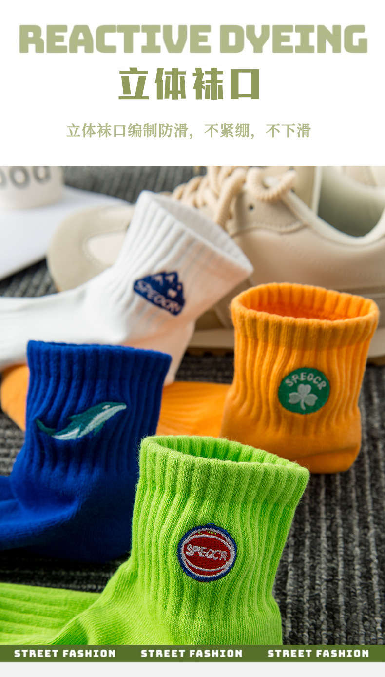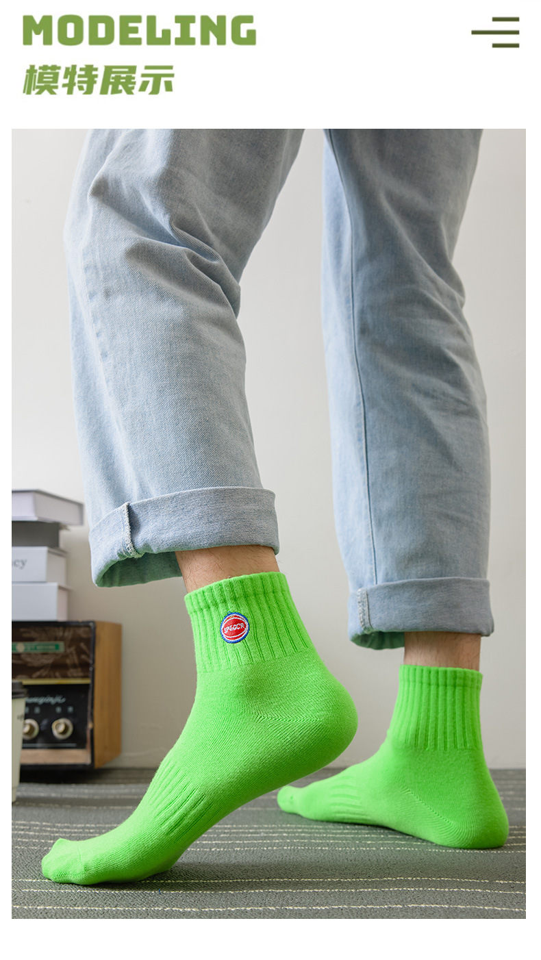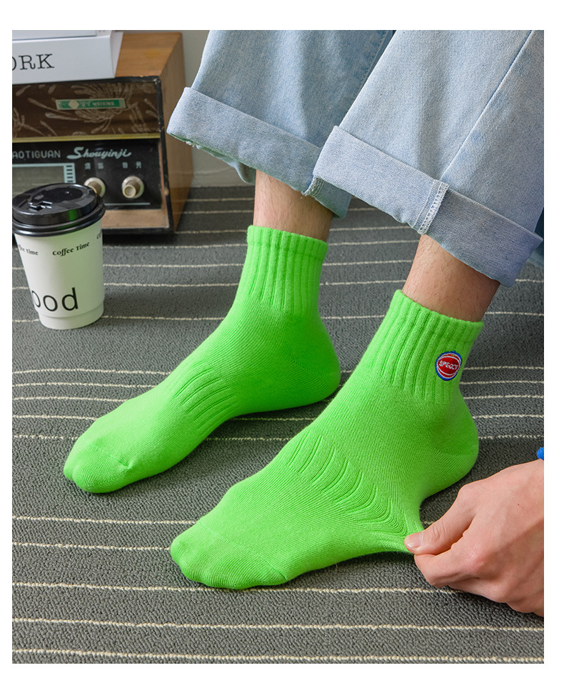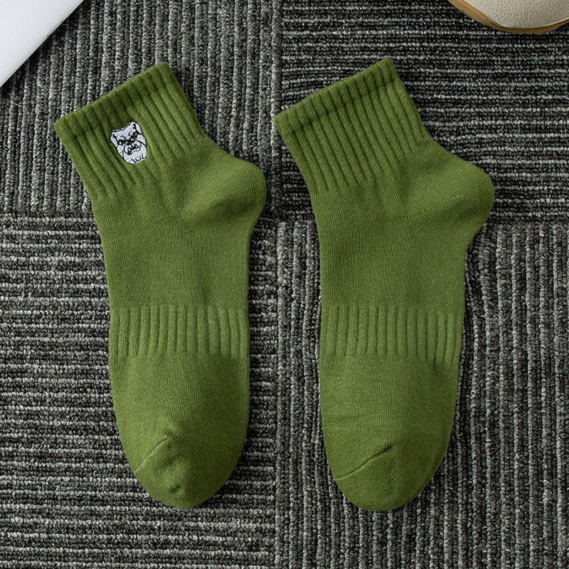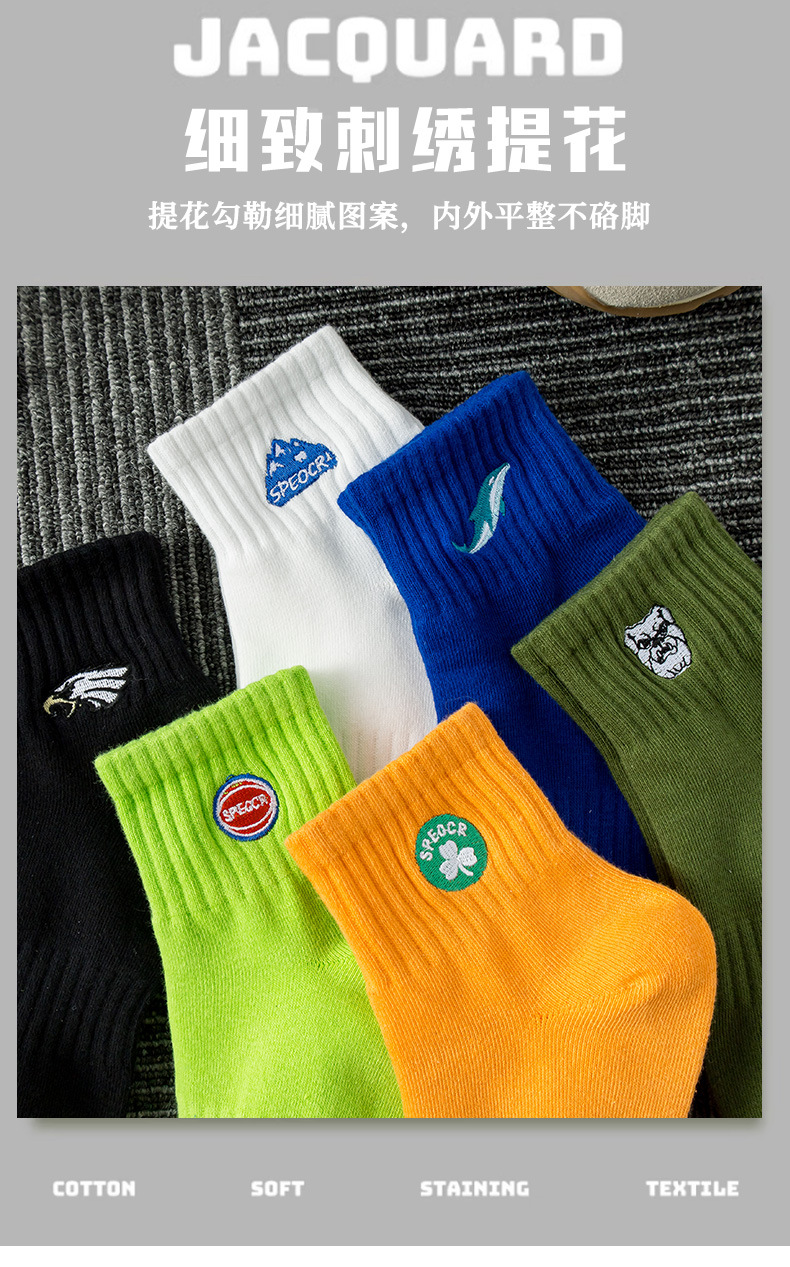 재고 세대 양말 남성 중간 길이 양말 자수 면 양말, 트렌디 한 일본식 간단한 스포츠 겉옷 스타킹은 땀을 흡수합니다.