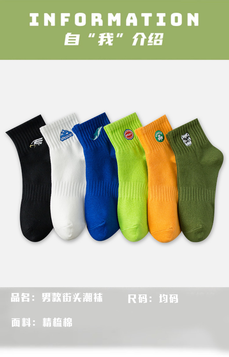재고 세대 양말 남성 중간 길이 양말 자수 면 양말, 트렌디 한 일본식 간단한 스포츠 겉옷 스타킹은 땀을 흡수합니다.스토어 가기