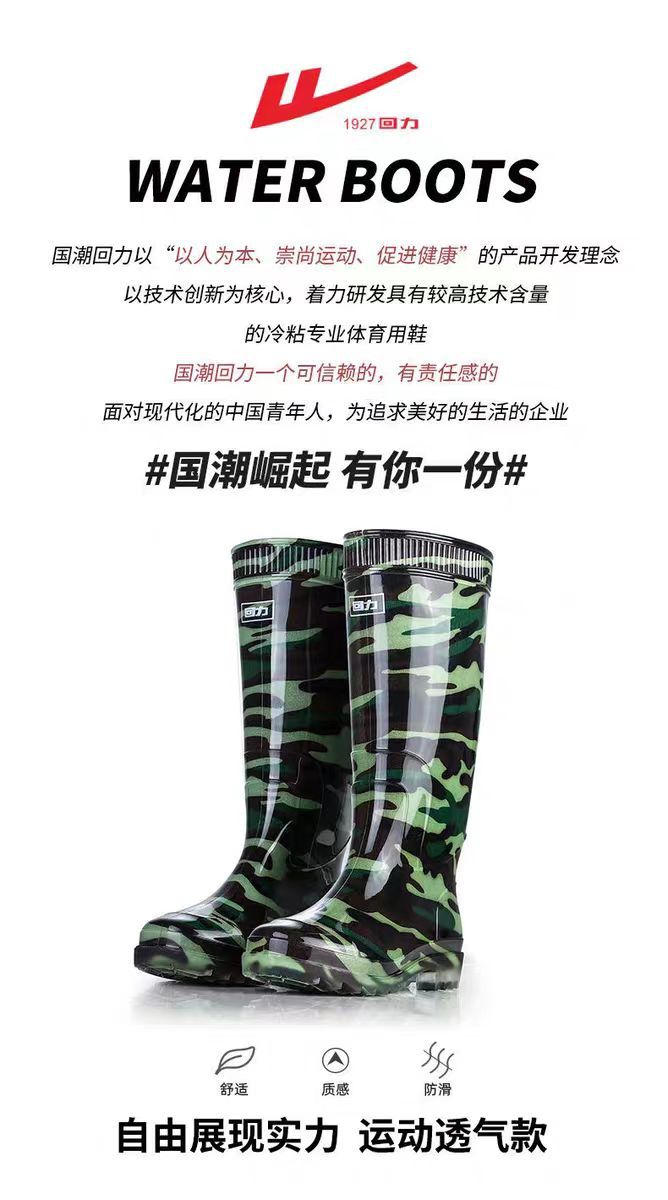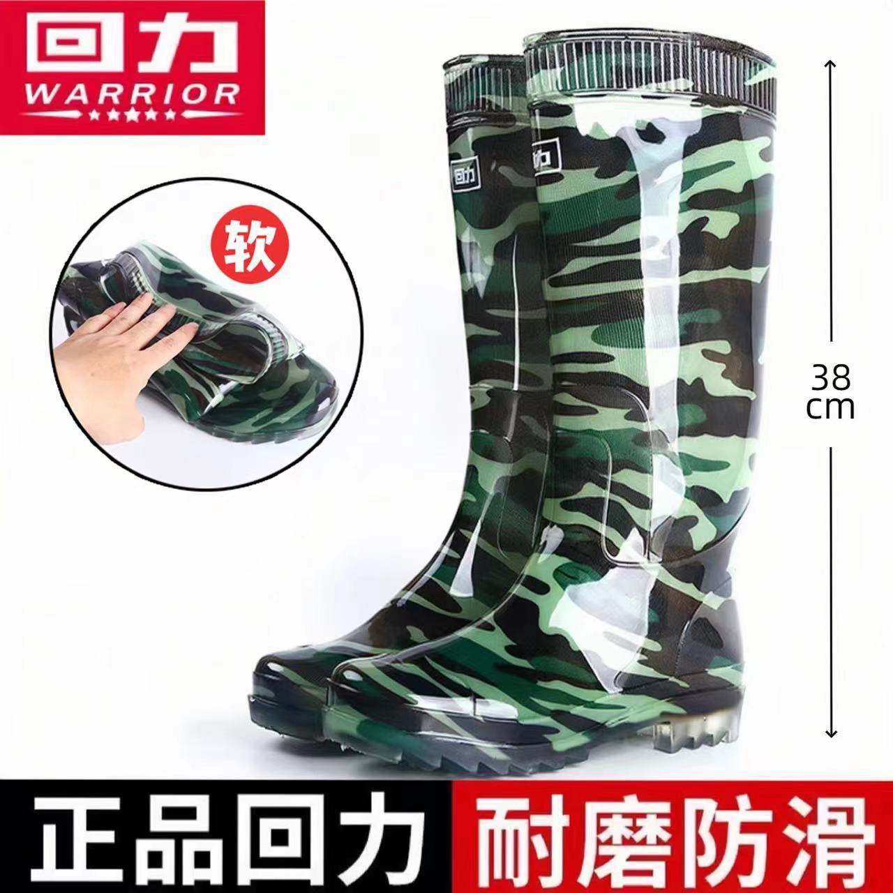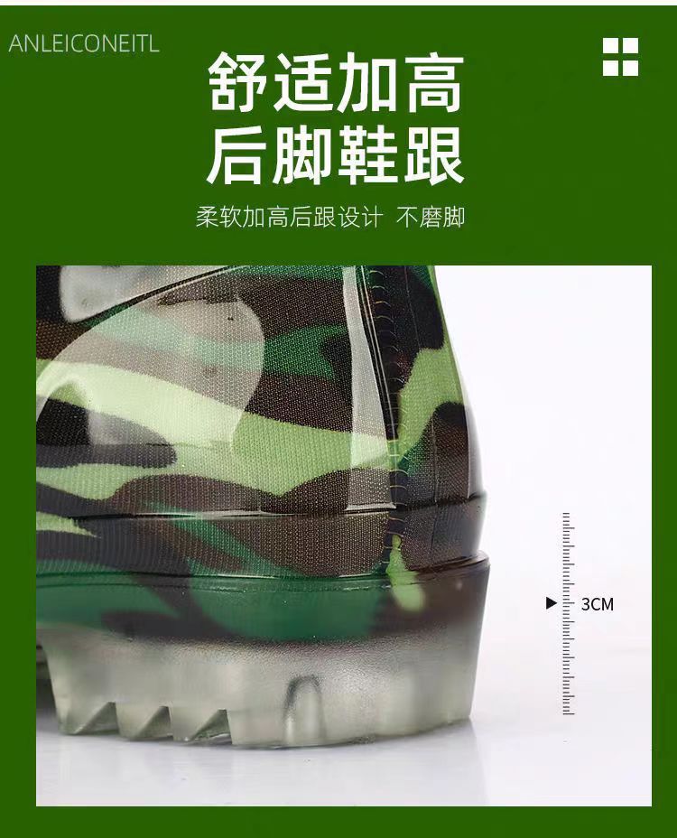 Huili 비 신발 남성 807 위장 높은 물 신발 PVC 장화 따뜻한 미끄럼 방지 노동 보호 고무 신발 도매스토어 가기