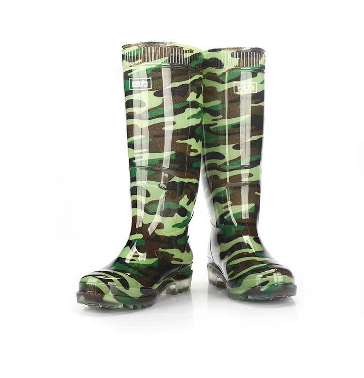 Huili 비 신발 남성 807 위장 높은 물 신발 PVC 장화 따뜻한 미끄럼 방지 노동 보호 고무 신발 도매
