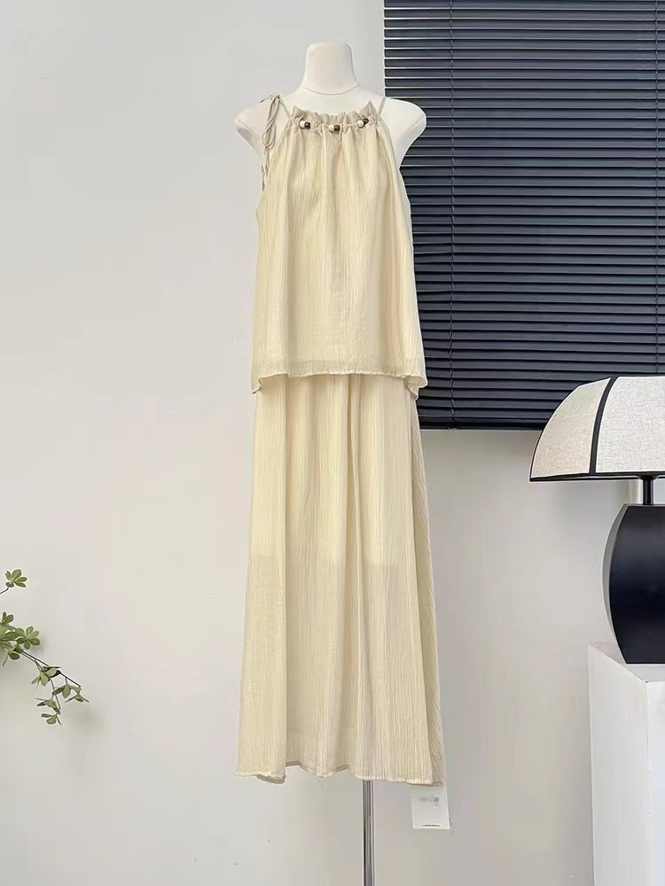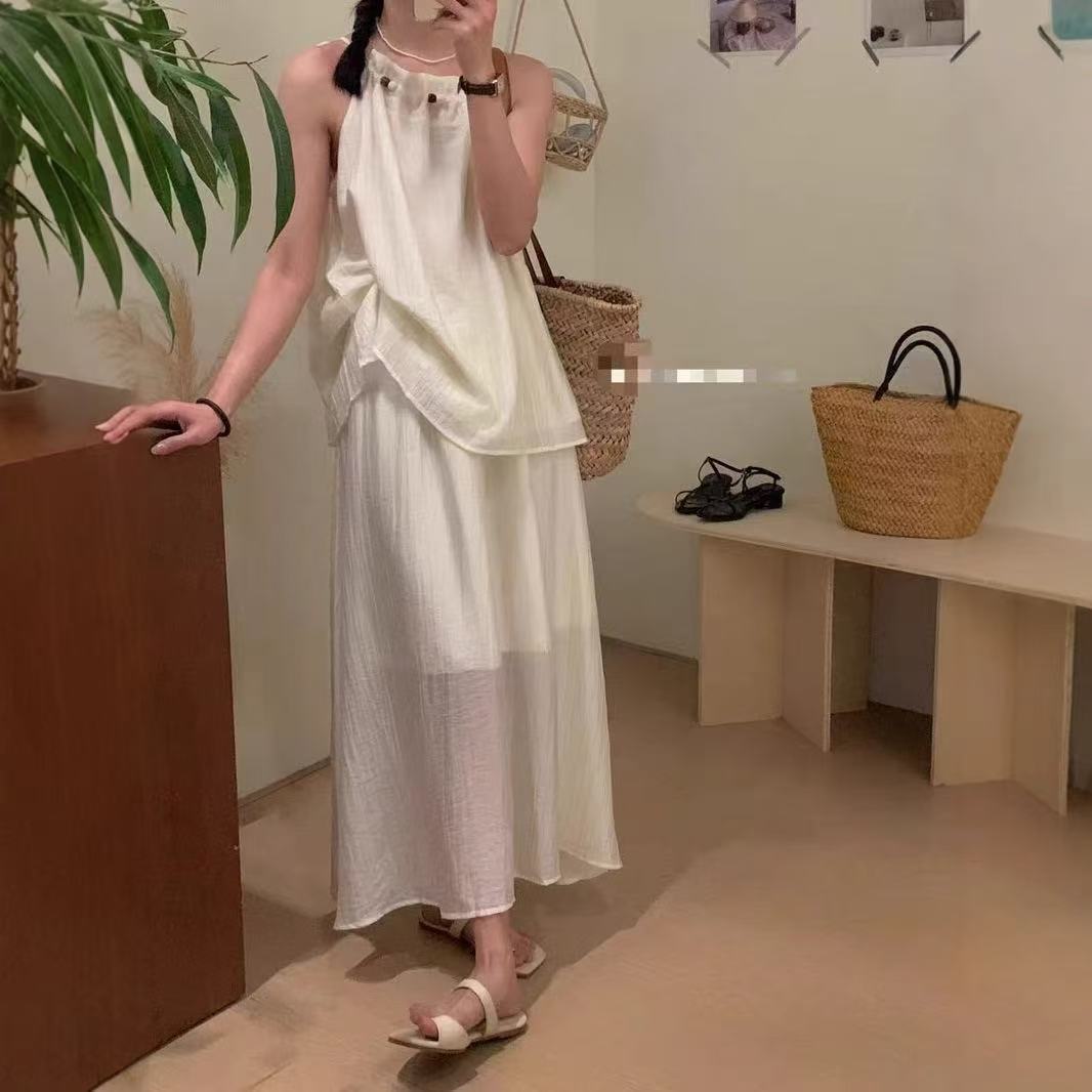 새로운 중국 선 스타일 세트 여성 조끼 카미 솔 탑 여름 새로운 A 라인 스커트 투피스 세트