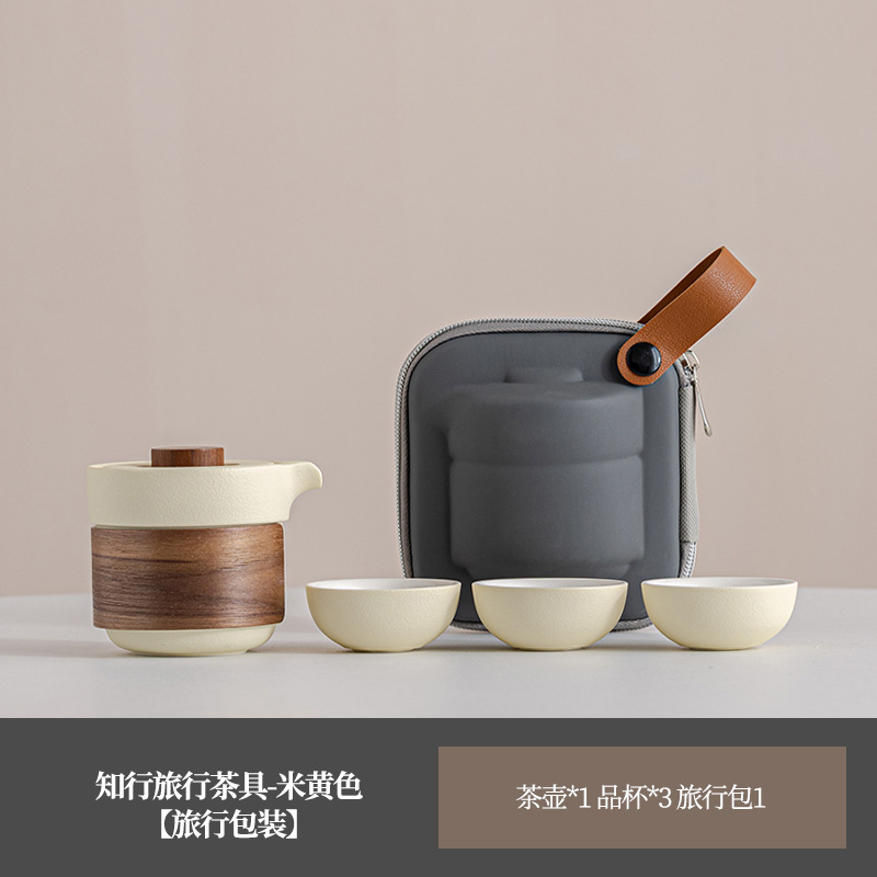 휴대용 여행 차 세트 작은 세트 휴대용 야외 가방 주전자 찻잔 한 사람 간단한 빠른 컵 3 컵 냄비스토어 가기