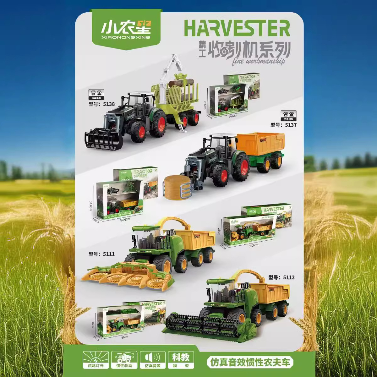 도매 작은 농장 스타 관성 농부 자동차 모델 밀 수확기 옥수수 수확기 큰 세트 어린이 장난감스토어 가기