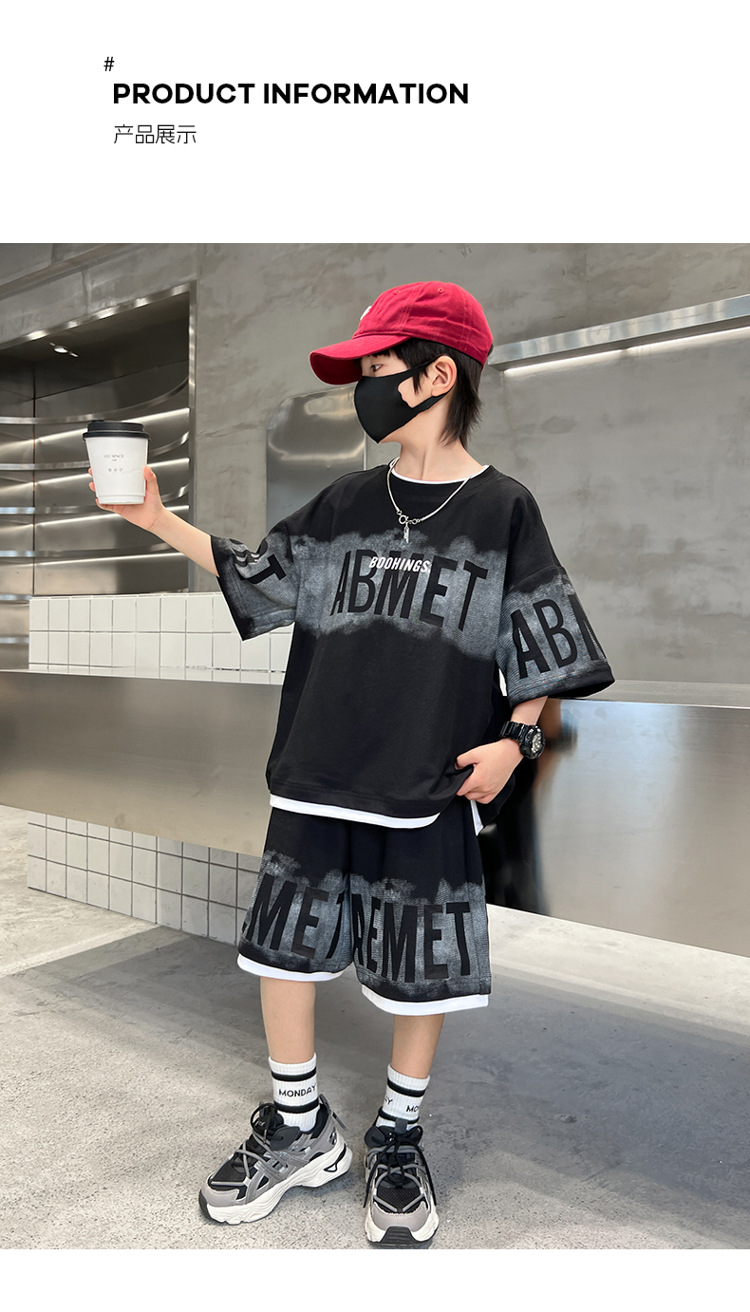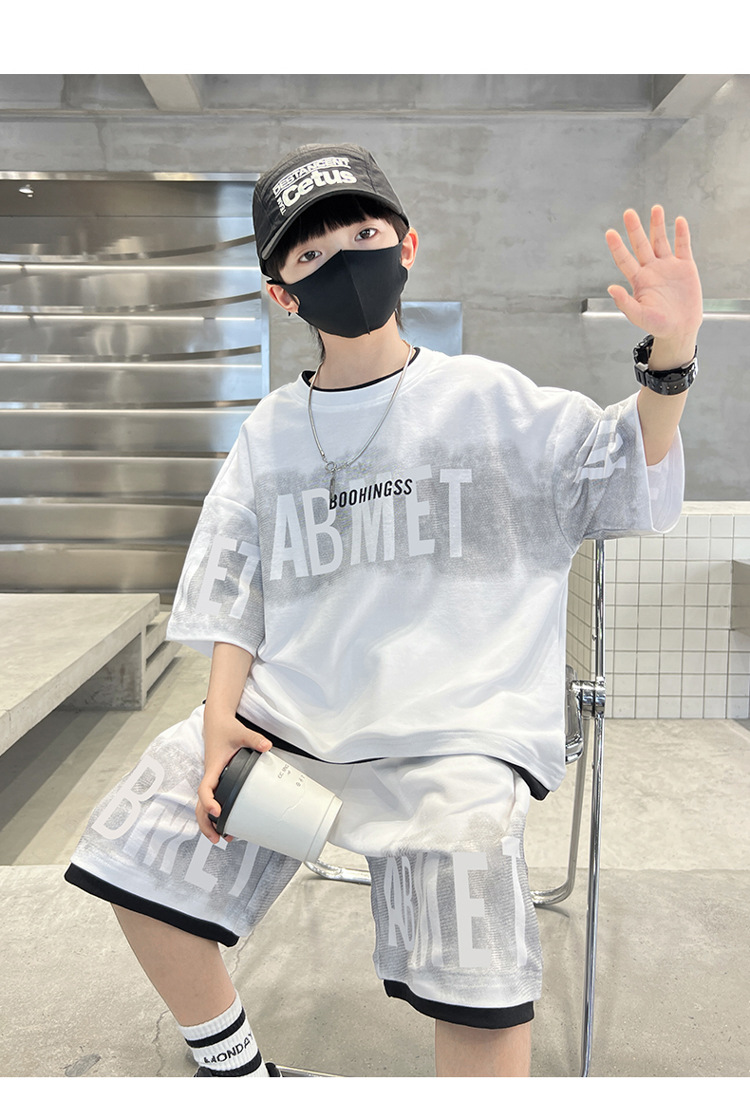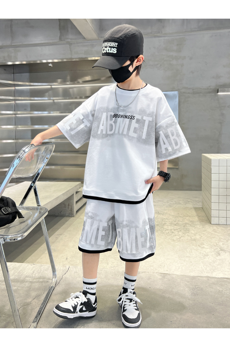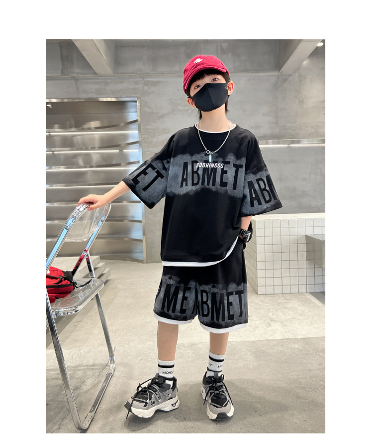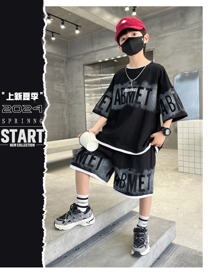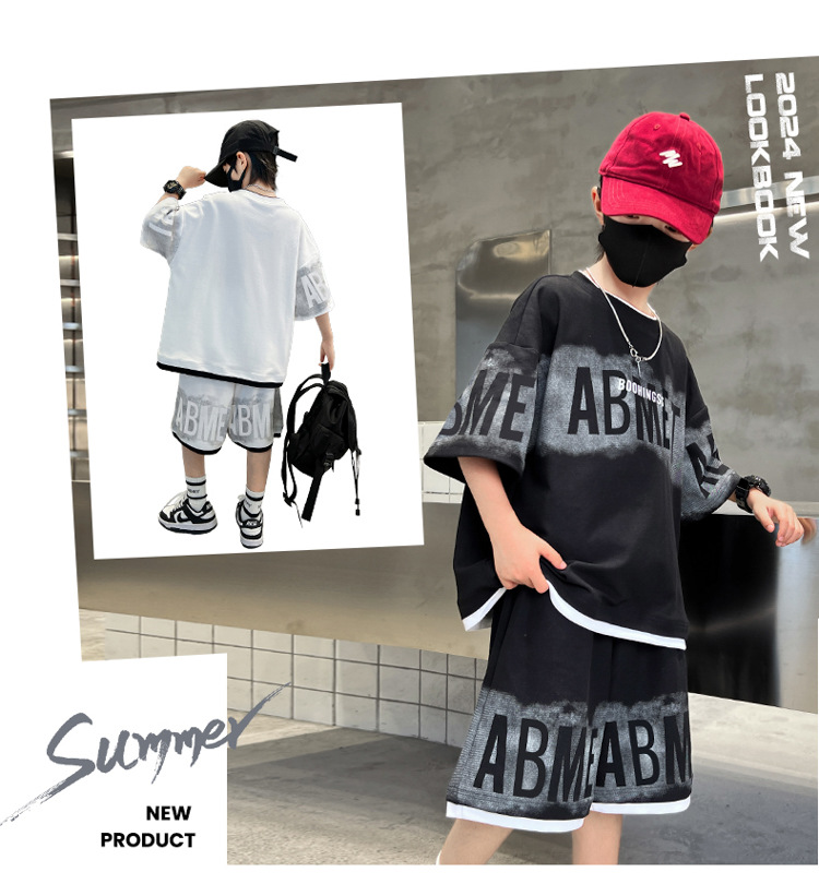 남학생 여름 의류 세트 2024 새로운 대형 어린이 여름 반팔 반바지 투피스 세련된 시원하고 잘 생긴 유행 의류스토어 가기