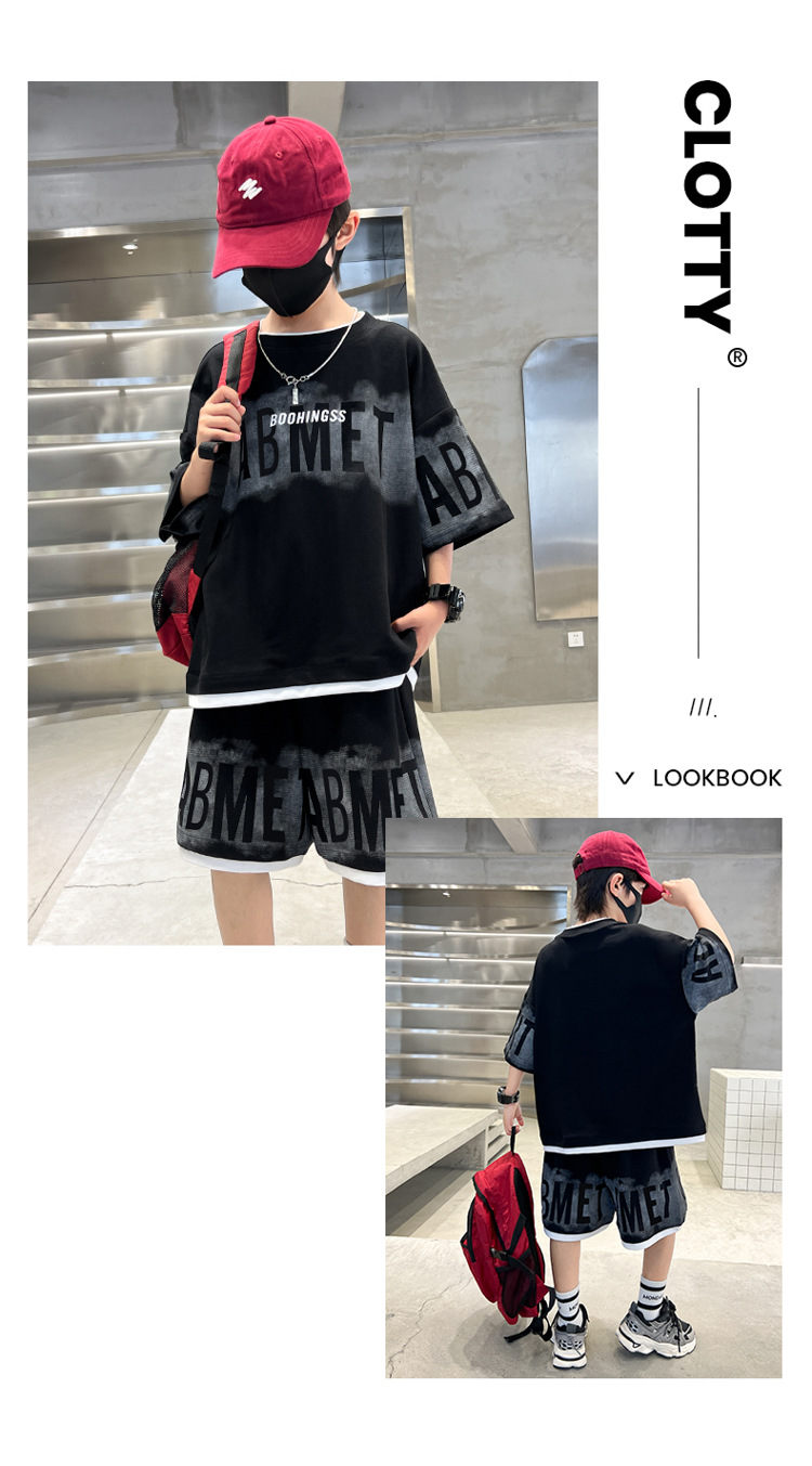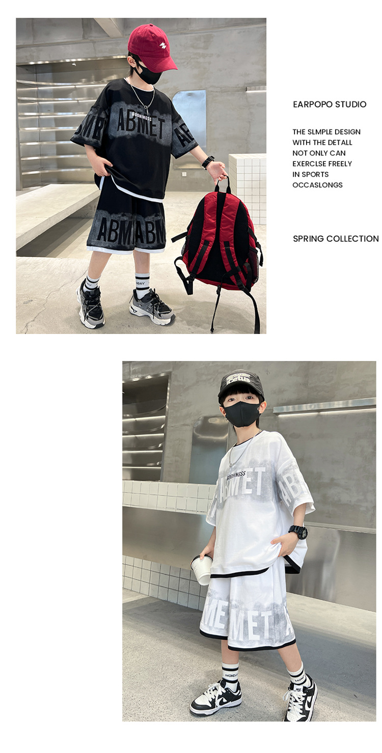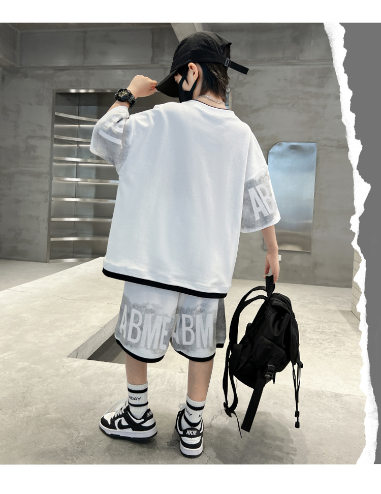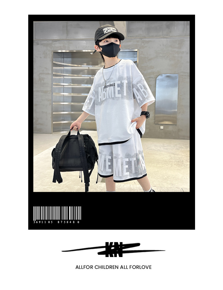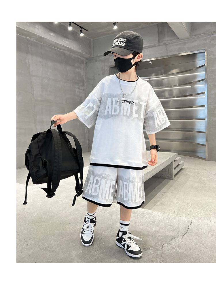 남학생 여름 의류 세트 2024 새로운 대형 어린이 여름 반팔 반바지 투피스 세련된 시원하고 잘 생긴 유행 의류스토어 가기