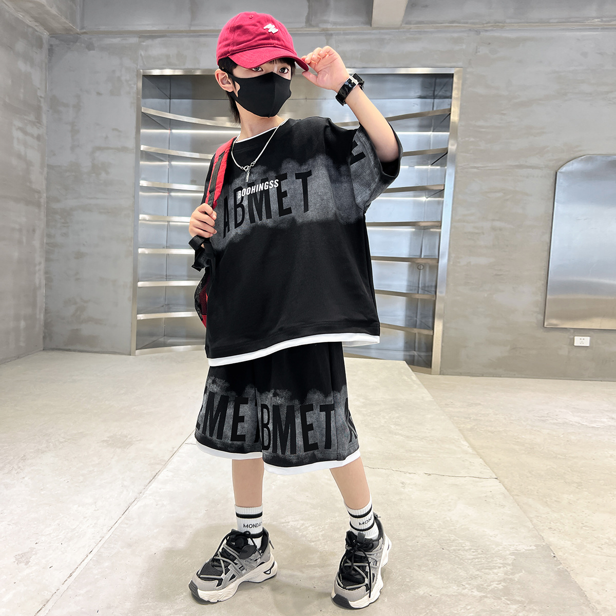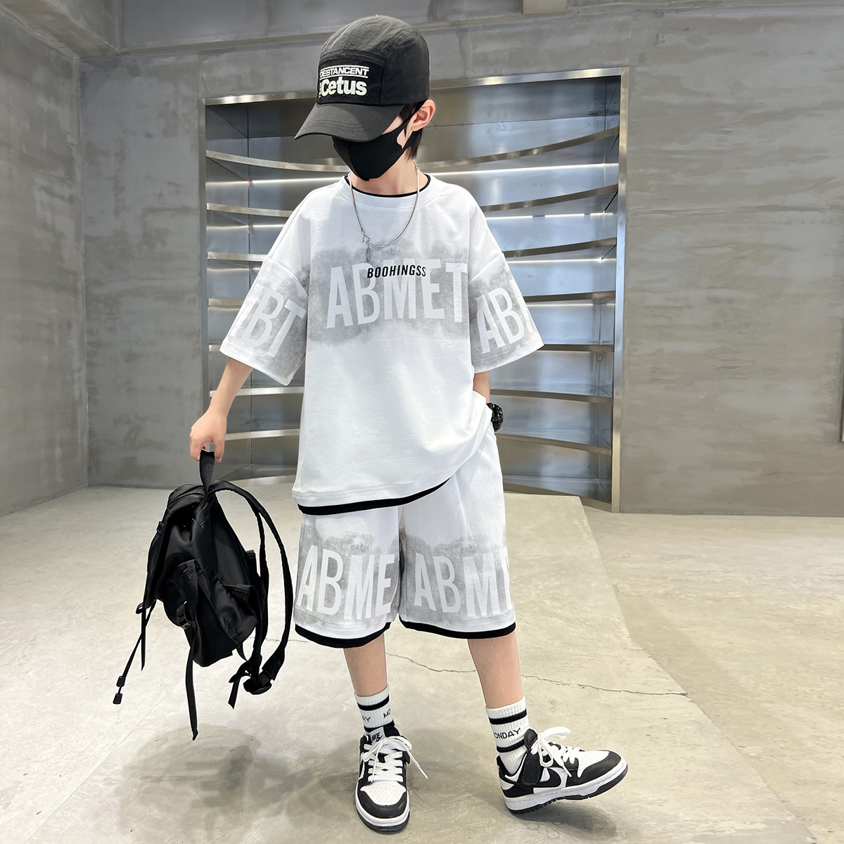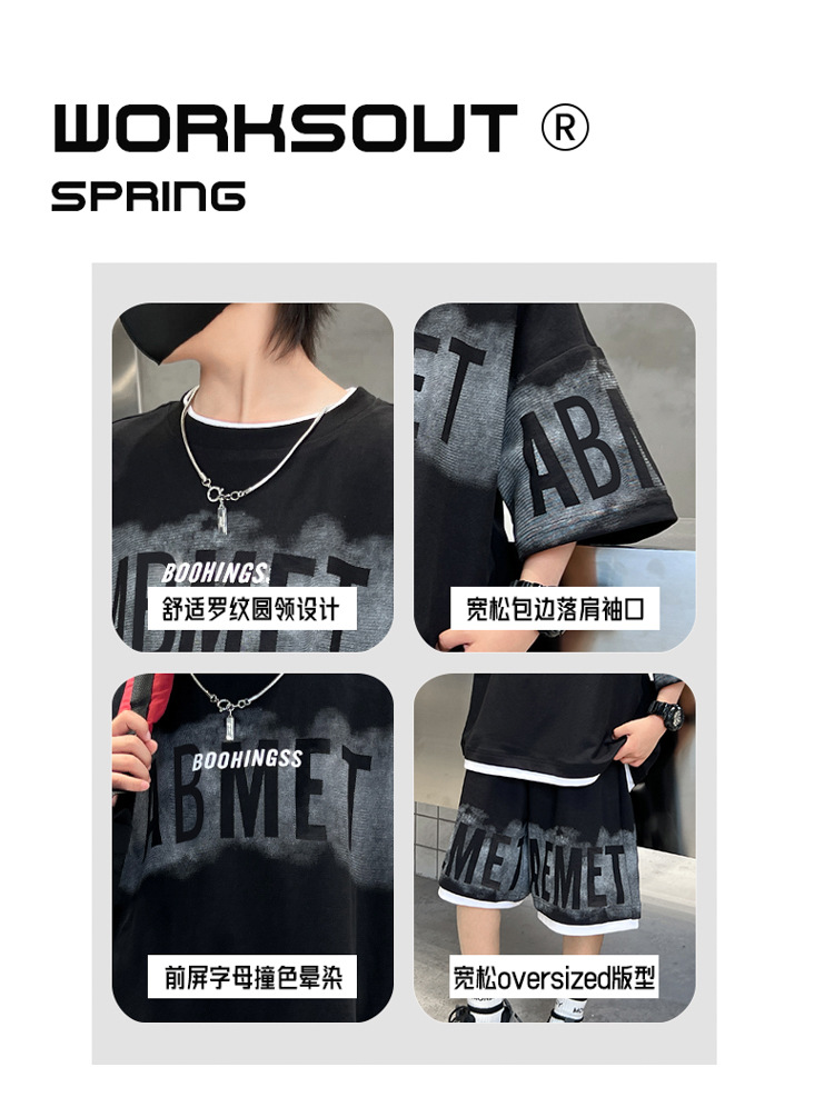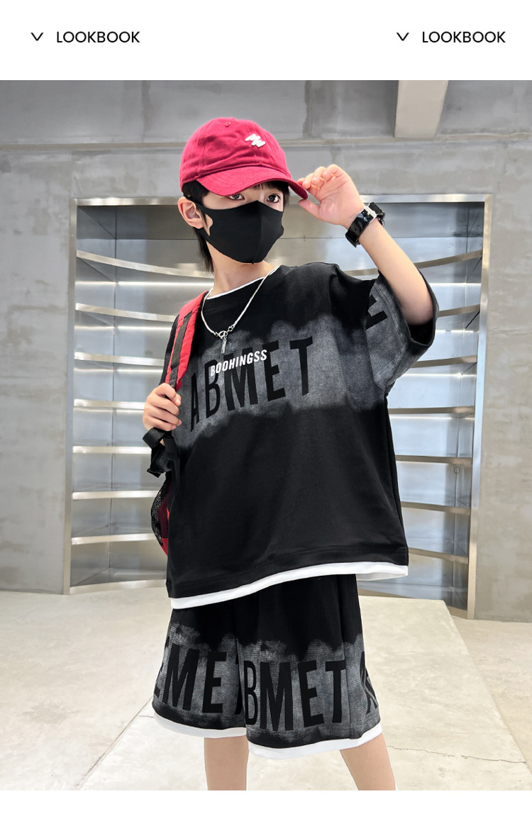남학생 여름 의류 세트 2024 새로운 대형 어린이 여름 반팔 반바지 투피스 세련된 시원하고 잘 생긴 유행 의류스토어 가기