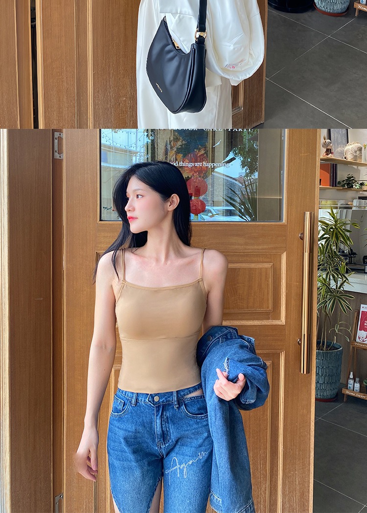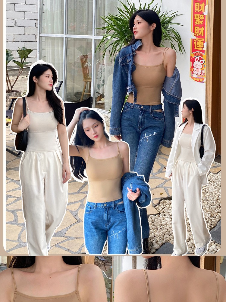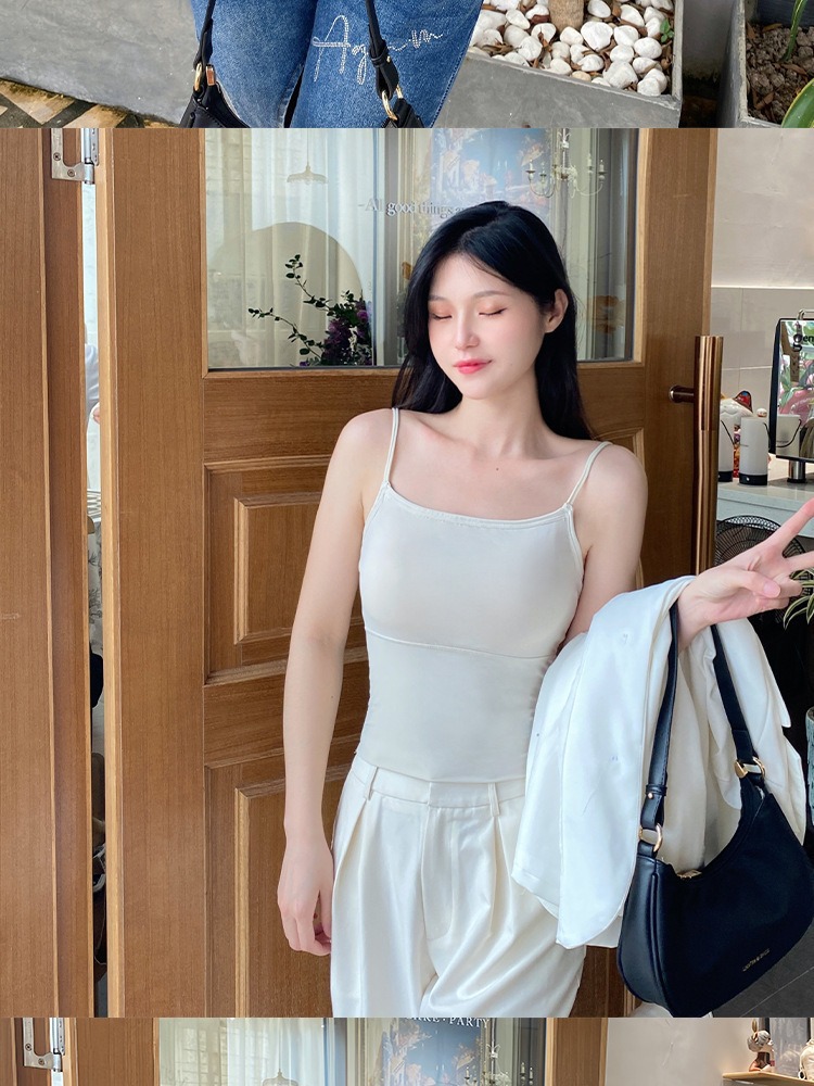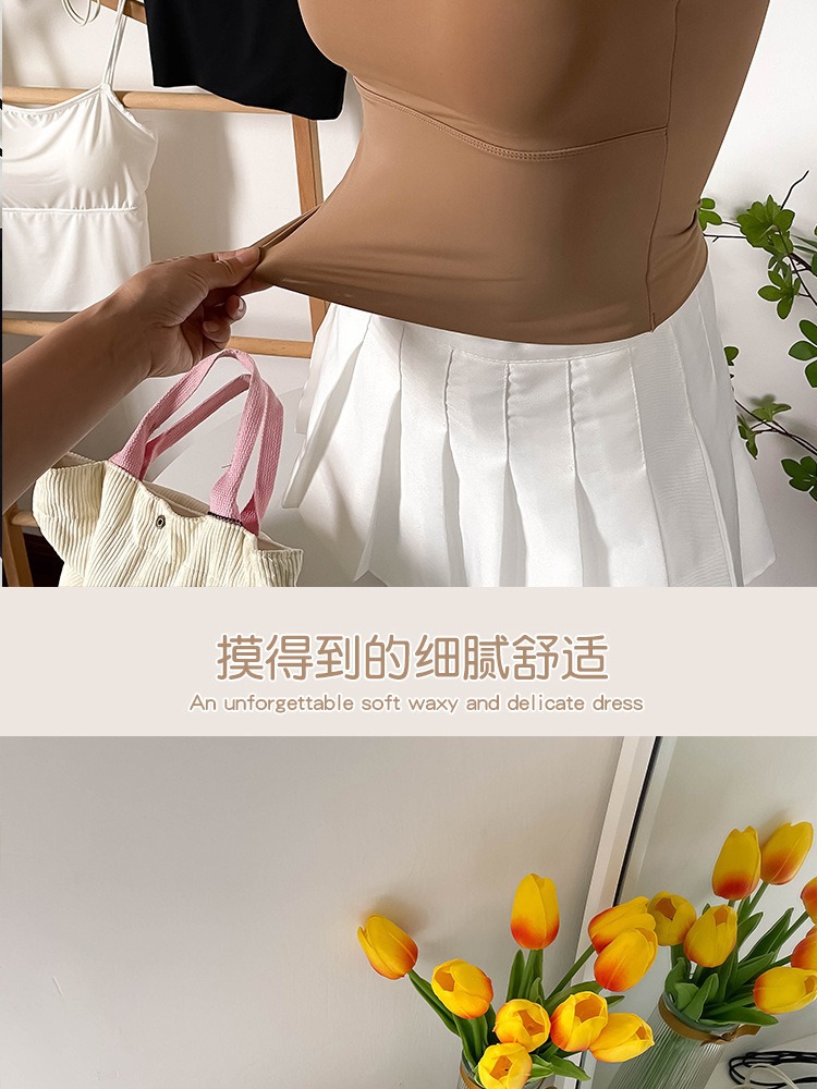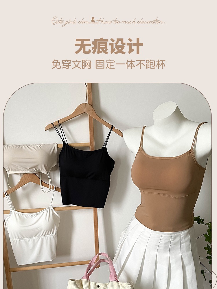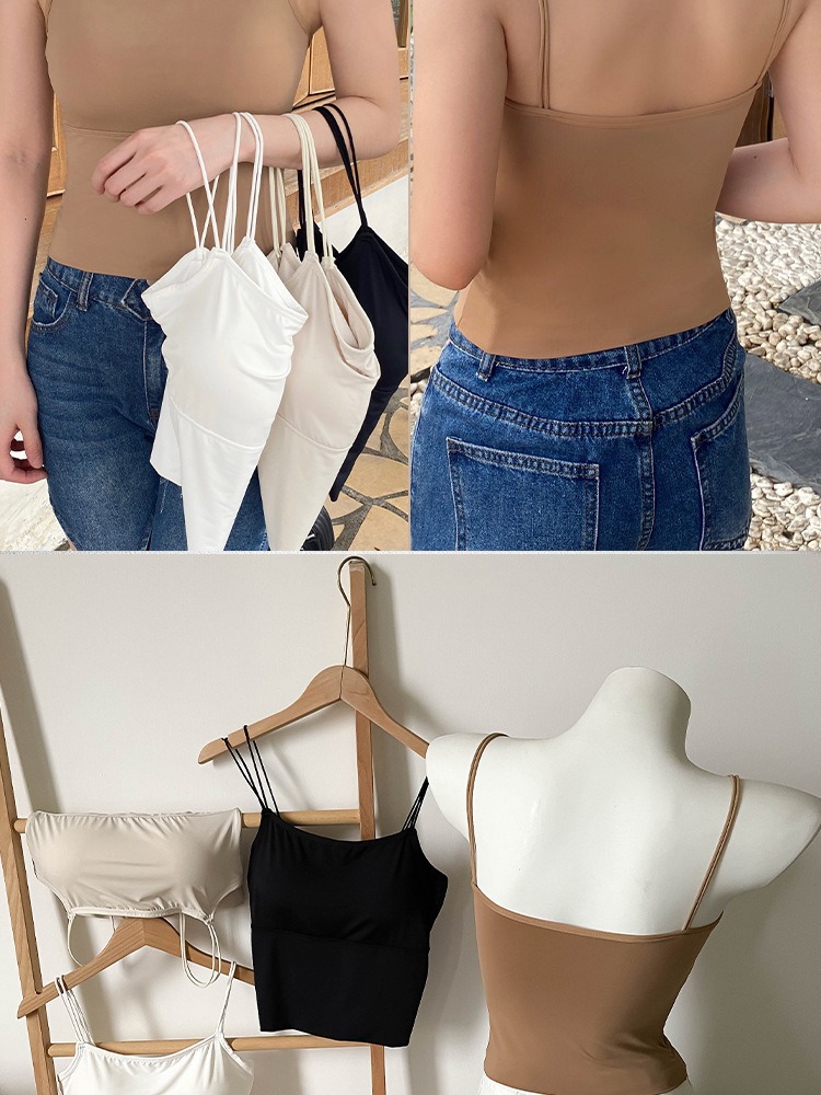 아이스 실크 Tracless Beauty Back Long Fixed Cup 원피스 슬링베이스 조끼 여성 내부 착용 여름 외부 착용 탑스토어 가기