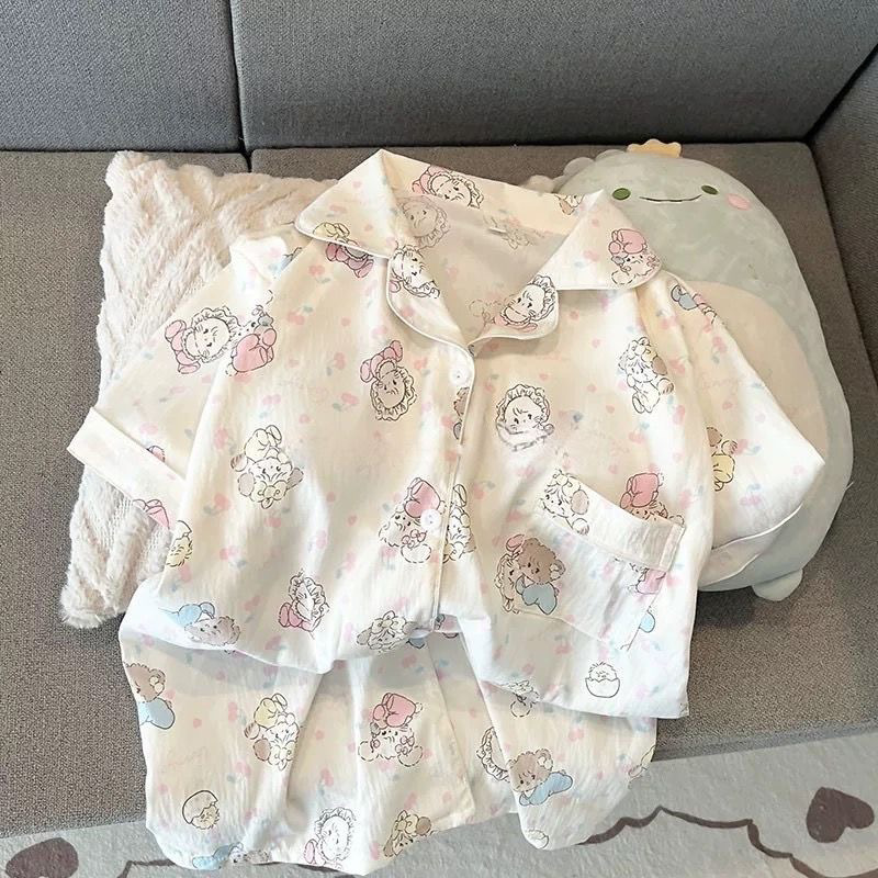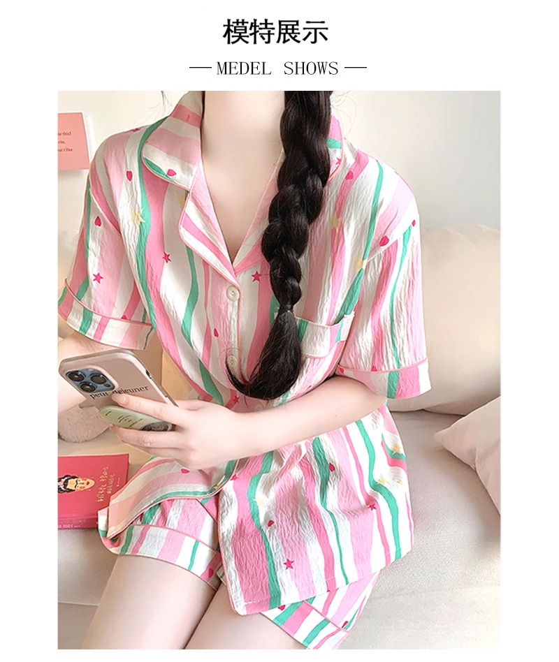 여성을위한 도파민 줄무늬 잠옷 여름 2025 새로운 반팔 정장 얇은 구름 면화 여름 여성 가정 의류스토어 가기