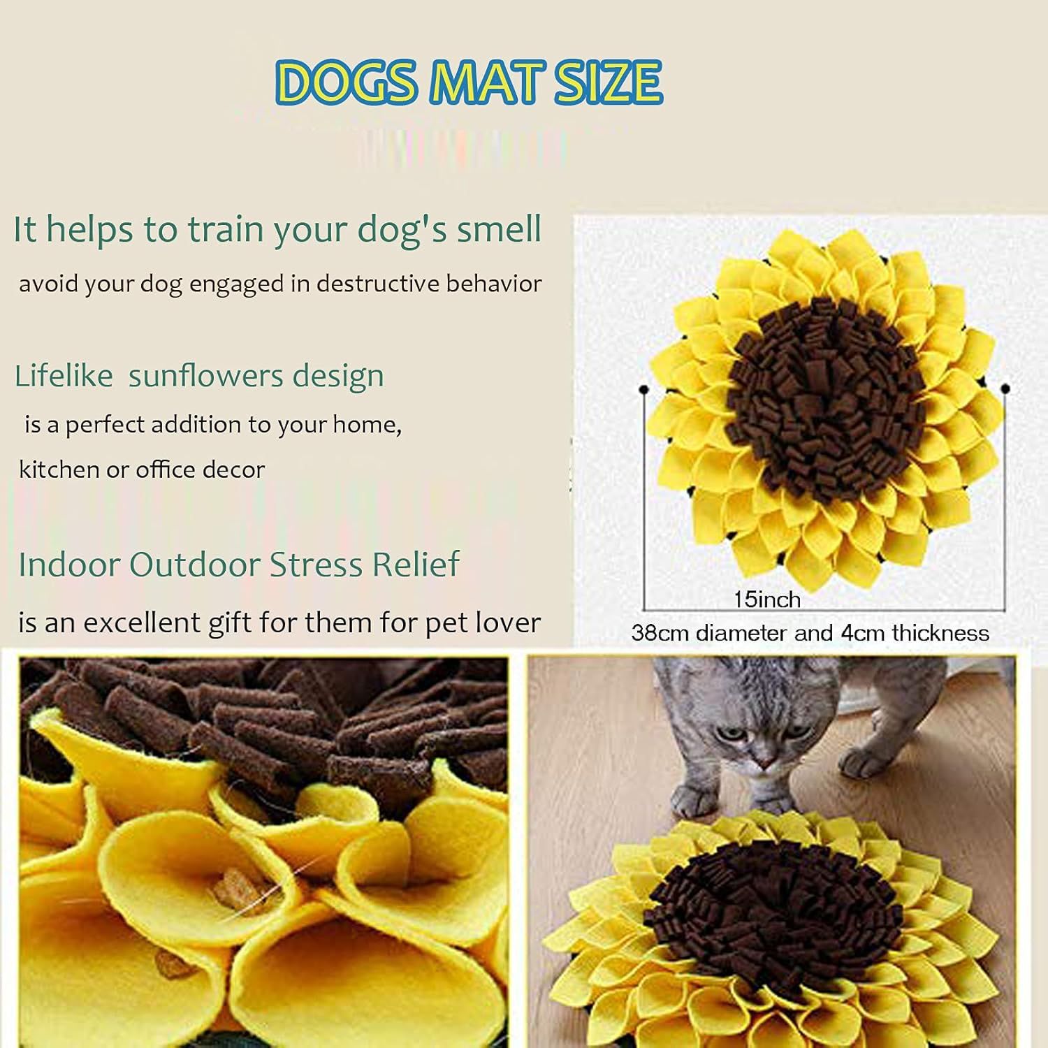 국경 간 현장 개 해바라기 스니핑 매트 펠트 매트 느린 먹는 그릇 질식 방지 애완 동물 냄새 훈련 식품 매트
