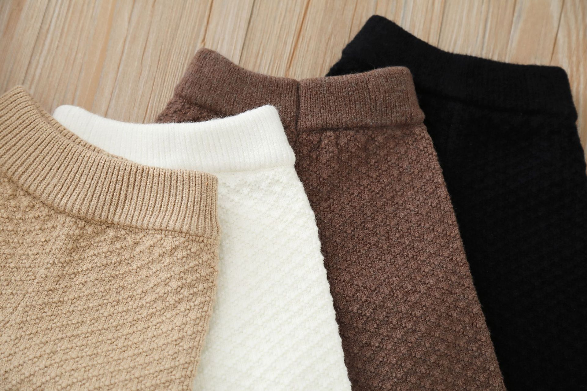 가을 2024 새로운 니트 단색 넓은 다리 바지 한국 스타일 소년 소녀 양모 바지 캐주얼 바지