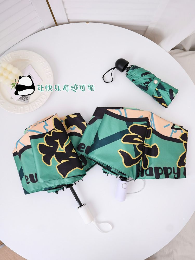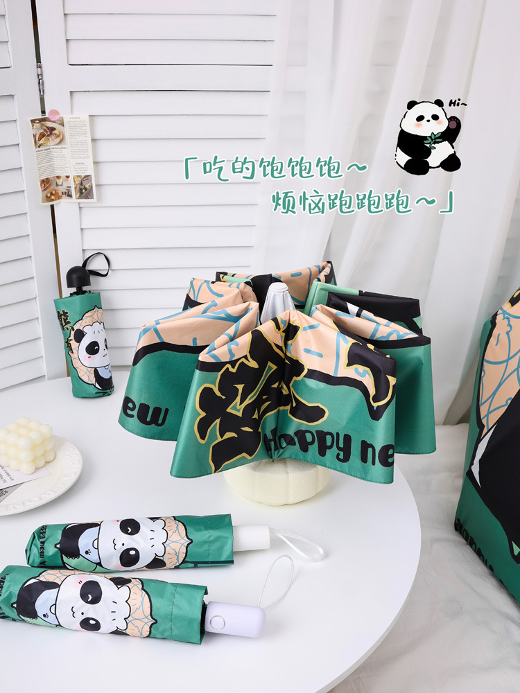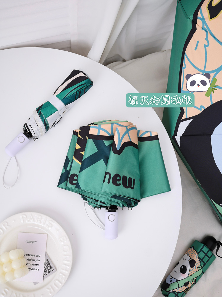 Ins 팬더 완전 자동 태양 우산 여성의 태양 보호 자외선 보호 맑고 비 보호 이중 목적 작고 편리한 접는 우산