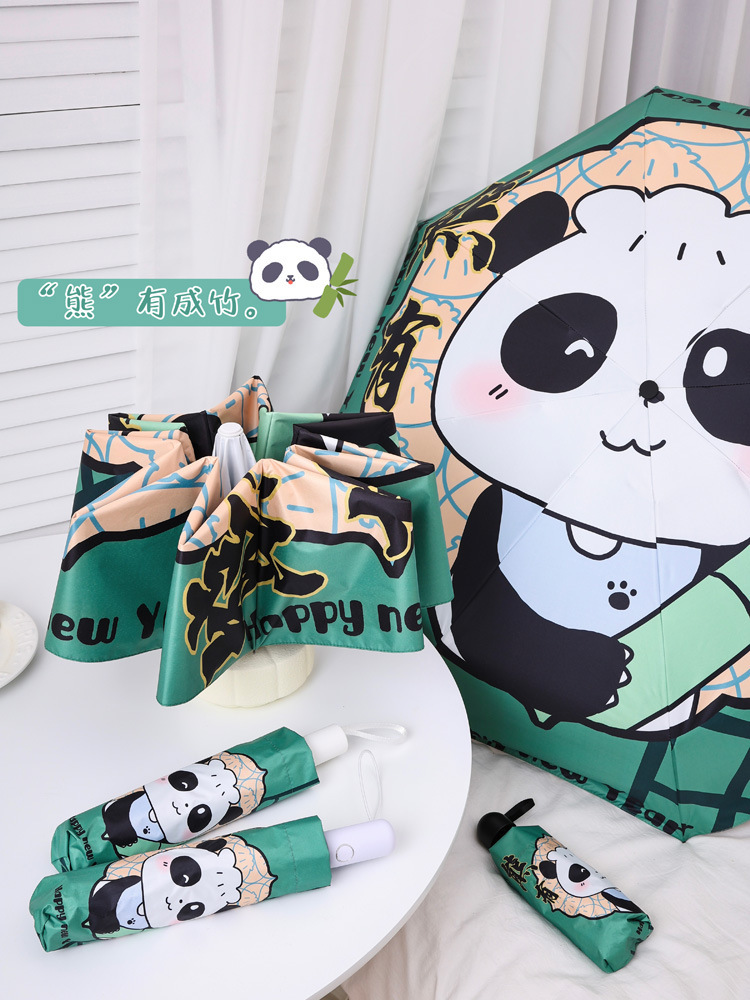 Ins 팬더 완전 자동 태양 우산 여성의 태양 보호 자외선 보호 맑고 비 보호 이중 목적 작고 편리한 접는 우산스토어 가기