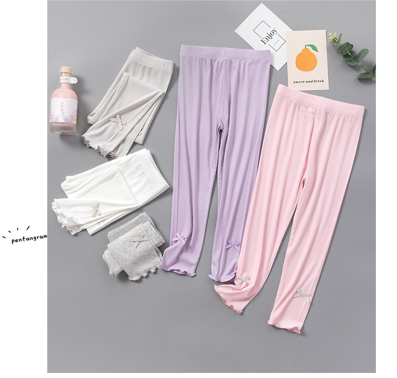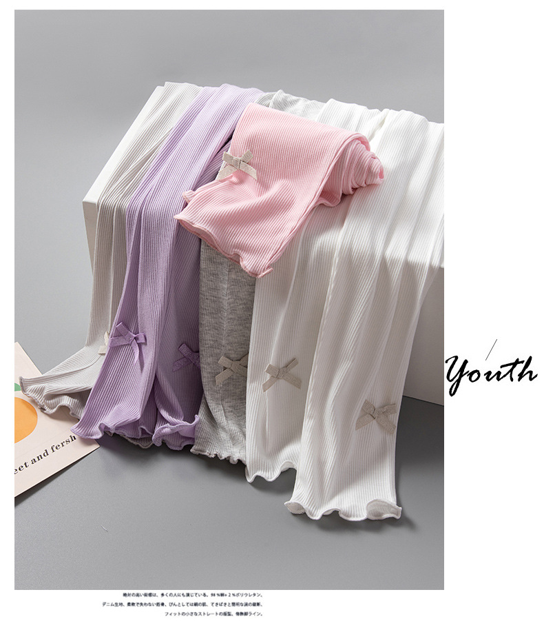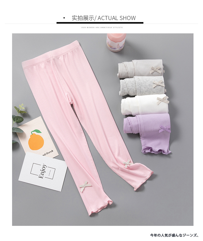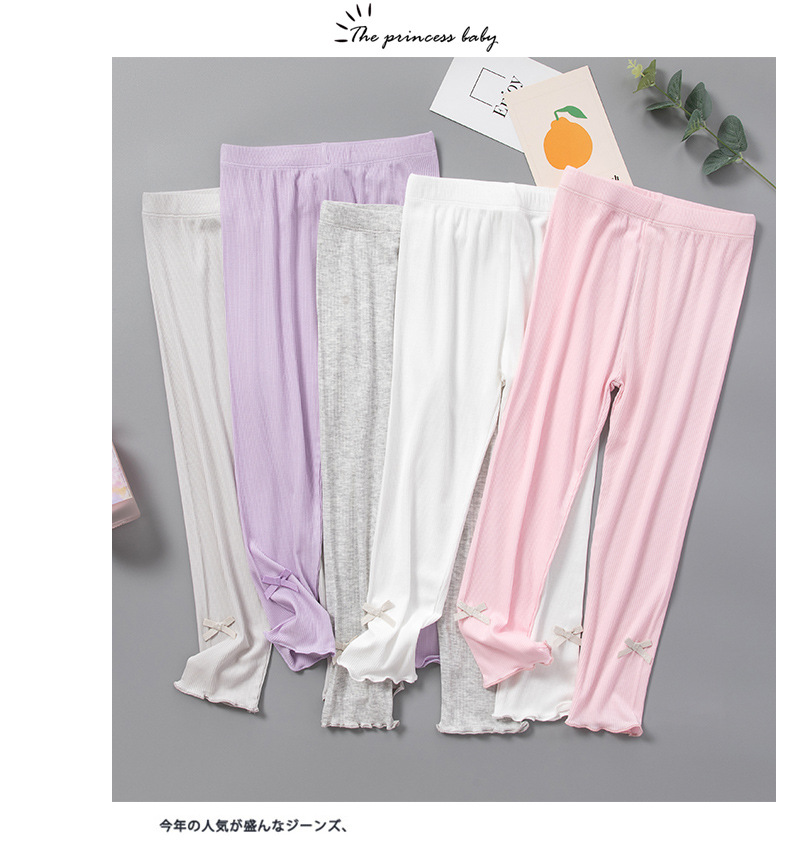 소녀 레깅스 여름 얇은 활 외부 착용 봄과 여름 어린이 착용 여성 아기 여름 긴 바지 스레드